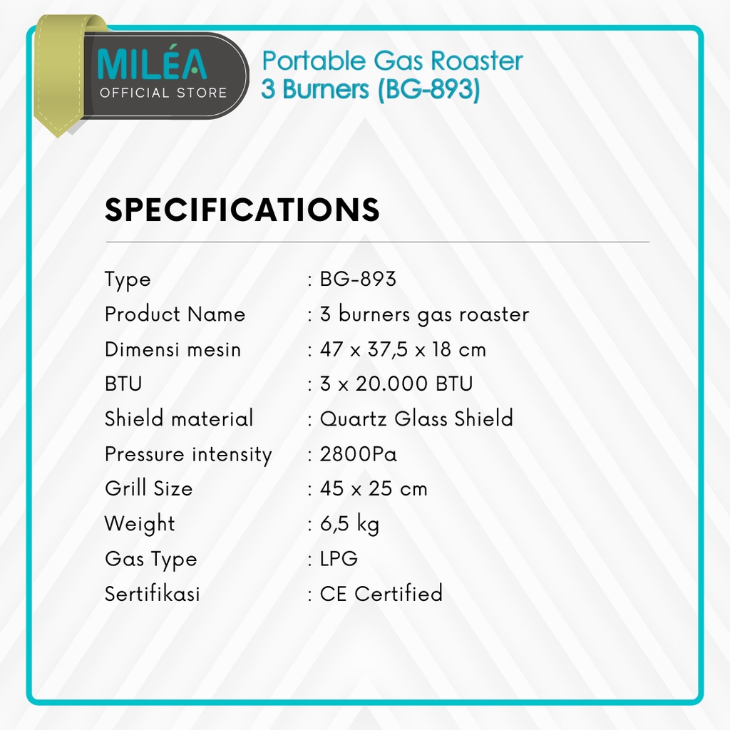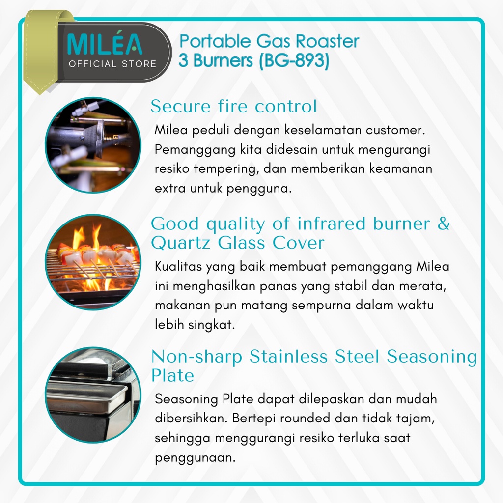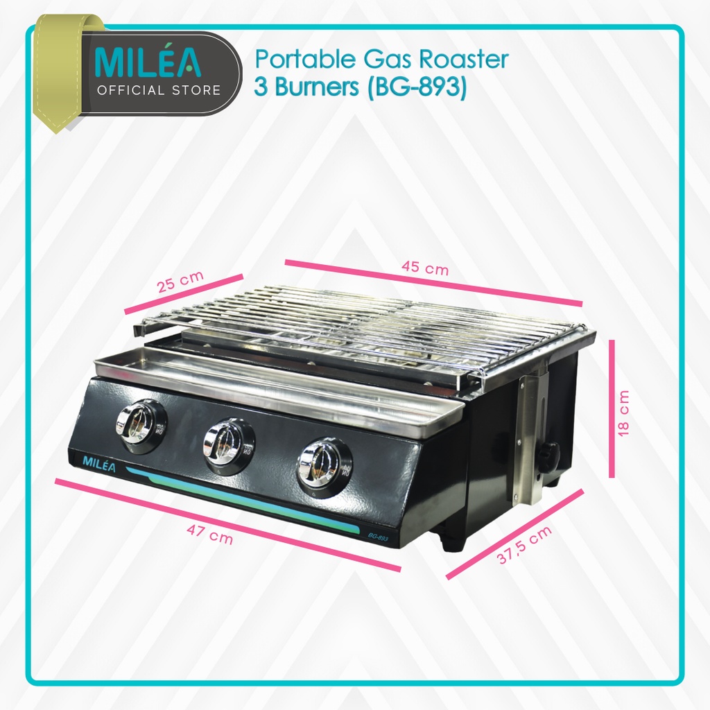 MILEA - Kompor Panggang BBQ 3 Tungku - Portable Gas Roaster 3 Burners / Alat Panggangan Grill Sosis BG-893