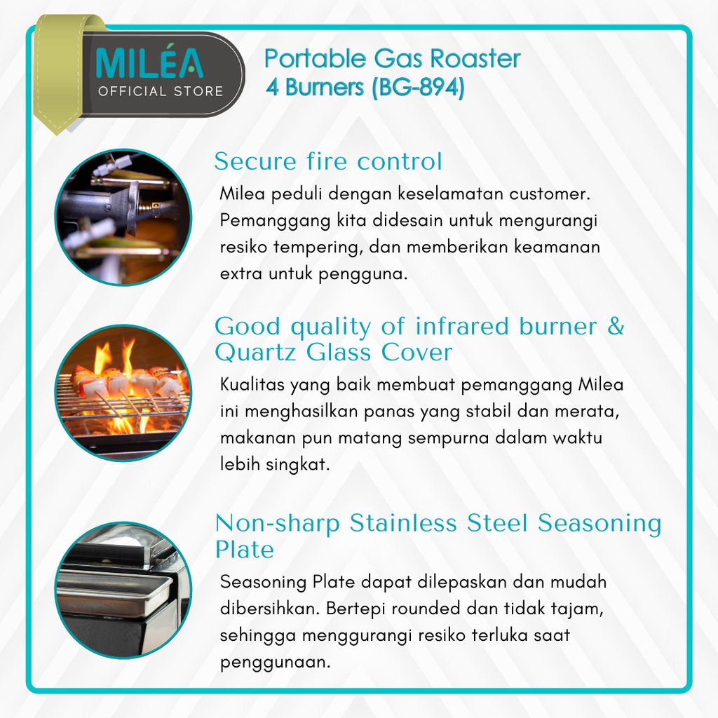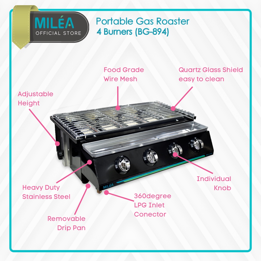 MILEA - Kompor Panggang BBQ 4 Tungku - Portable Gas Roaster 4 Burners / Alat Panggangan Grill Sosis BG-894