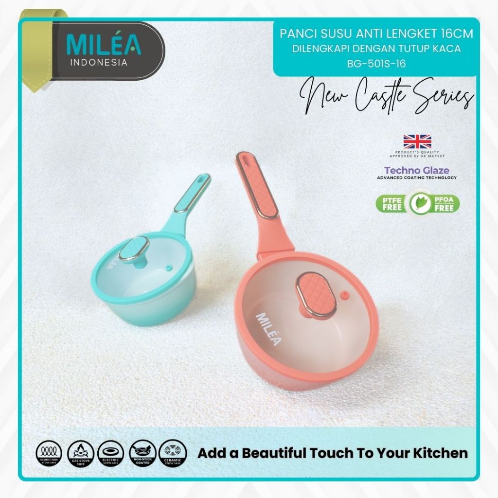 MILEA Set Sauce Pan 16 cm Ceramic Coating + Tutup Kaca | Panci Susu Anti Lengket Non Stick