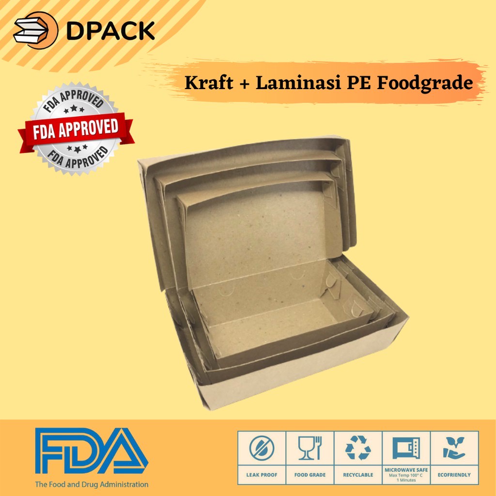 MIN.50pcs | Kotak Makan Kertas Selip Polos | Lunch Box | Kemasan Makanan ECO Kraft | Box Ayam Geprek | Kotak Box Makanan | Box Kertas Makanan | Packaging Makanan Laminasi | Dus Laminasi | Tempat Takeaway | Lunchbox Kraft