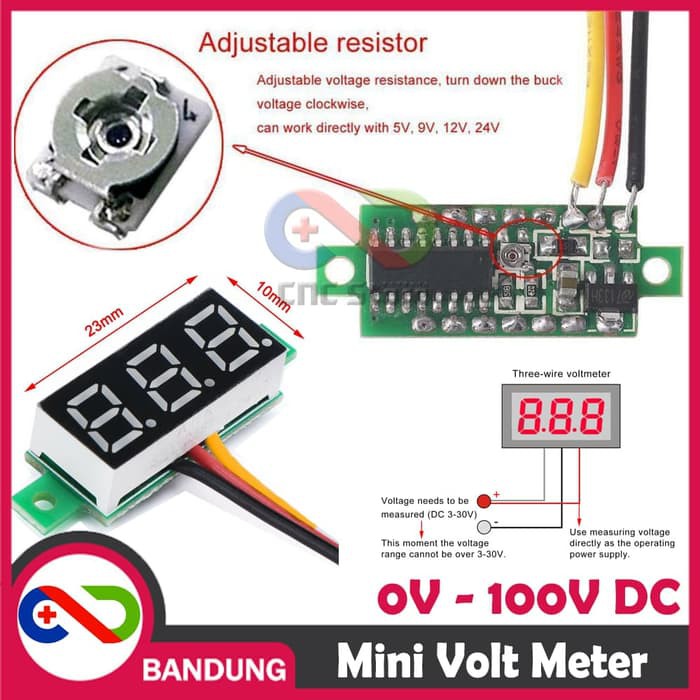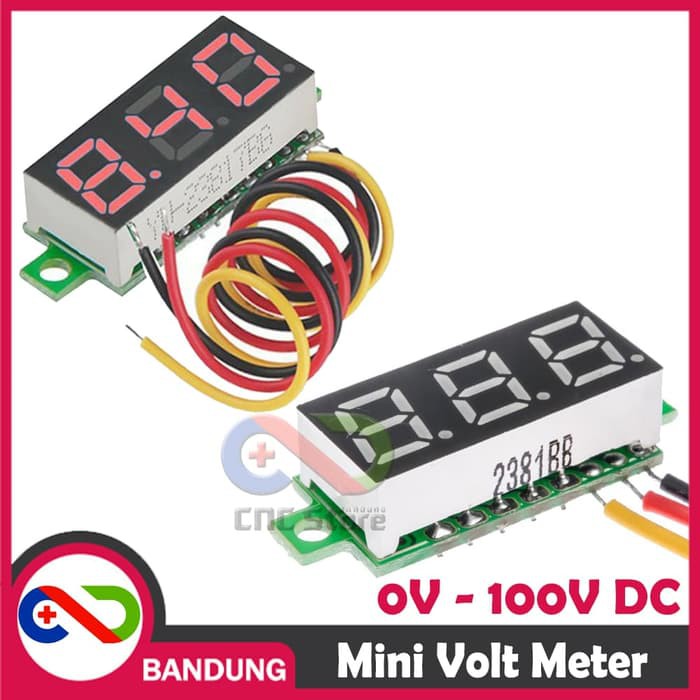 MINI VOLTMETER VOLT PANEL METER 0-100V DC 3 WIRE 0.28" RED MERAH