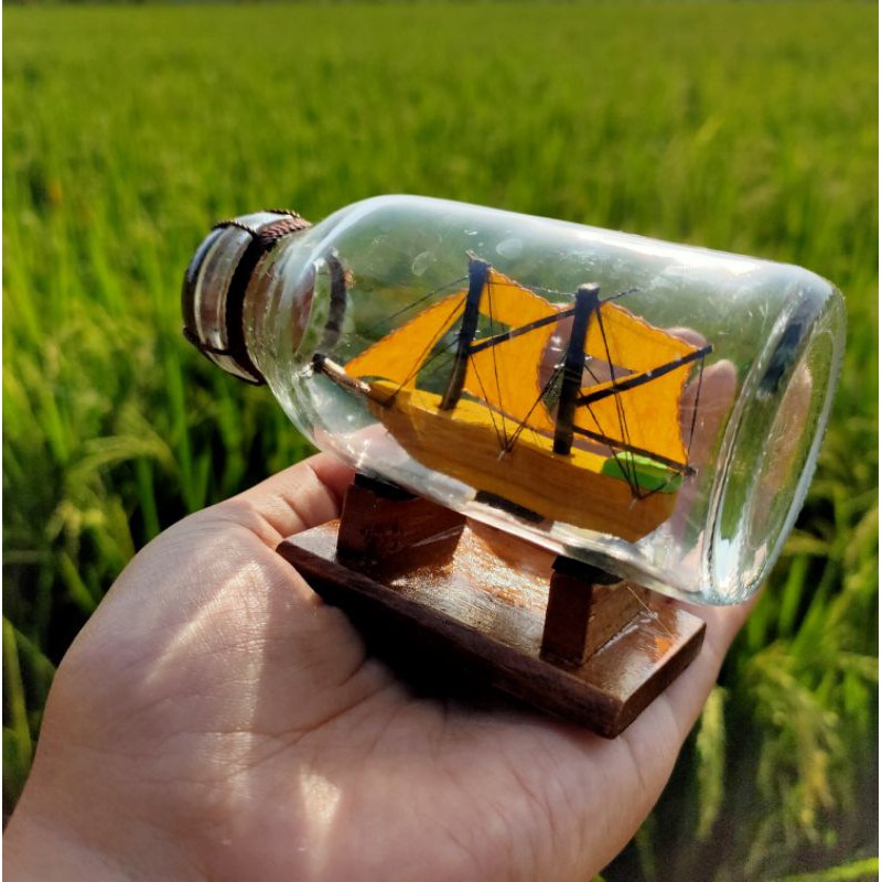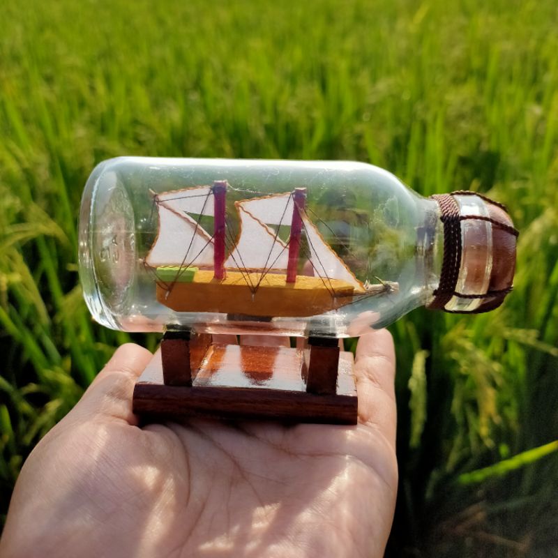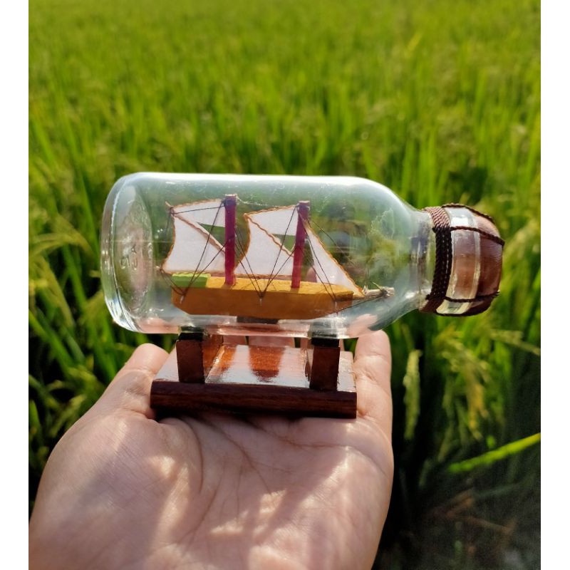 MINIATUR KAPAL BOTOL PINISI DALAM BOTOL UKURAN 11x6x5CM
