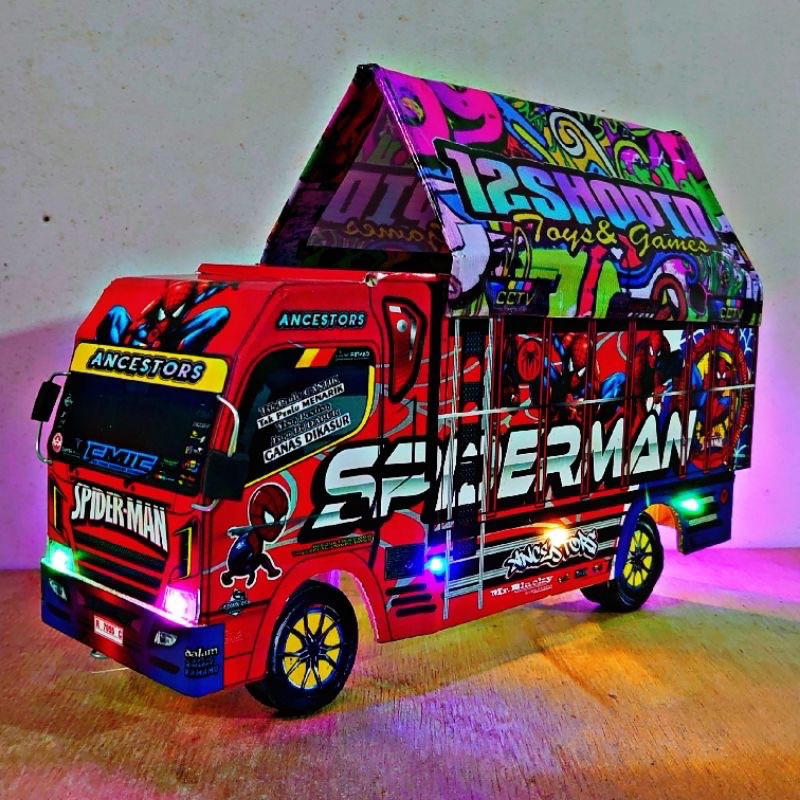 MINIATUR TRUK OLENG MINIATUR TRUK LAMPU TERPAL MURAH TRUK OLENG RODA KAYU BISA COD