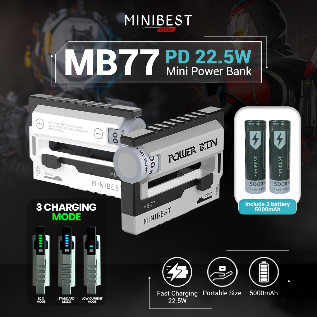 MINIBEST MB77 Power Bank 10.000mAh Tactical Power Supply Power Bin Baterai Lithium 2x 5000mAh Fast Charge 22.5W