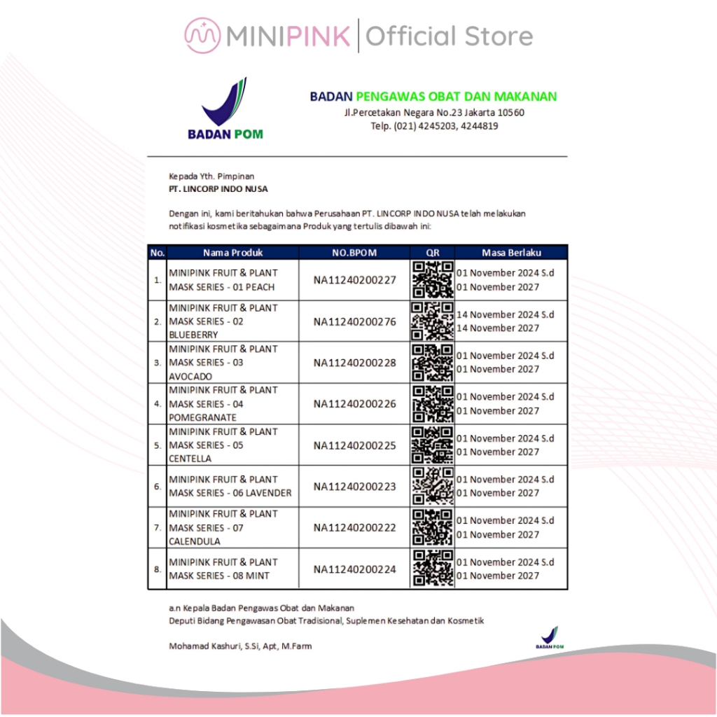 MINIPINK Sheet Mask Masker Wajah Mini Pink Fruit Mask Series MP001
