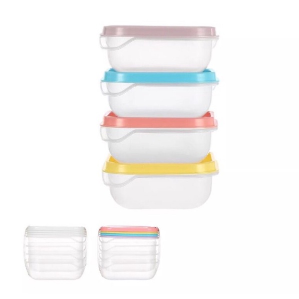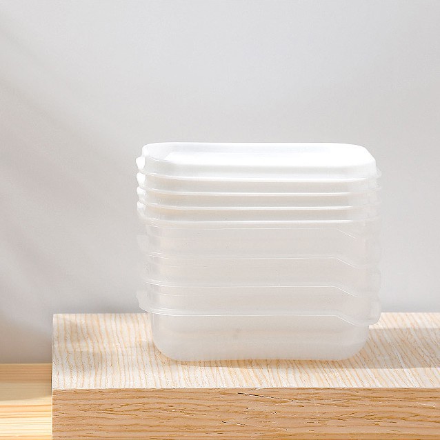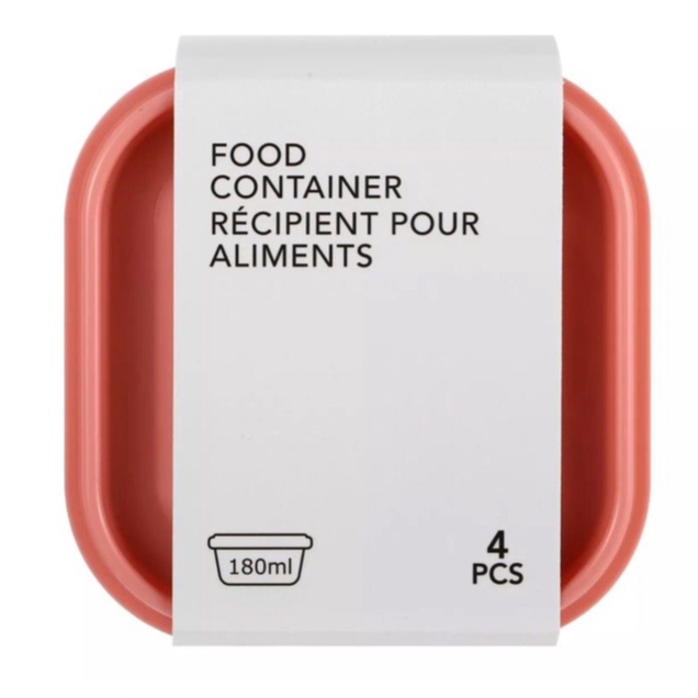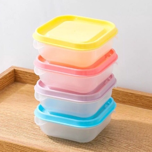 MINISO Kotak Penyimpan Makanan Plastik 4 Buah Storage Box 180ml Wadah Tempat Makanan Persegi Set Besar