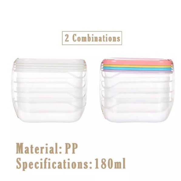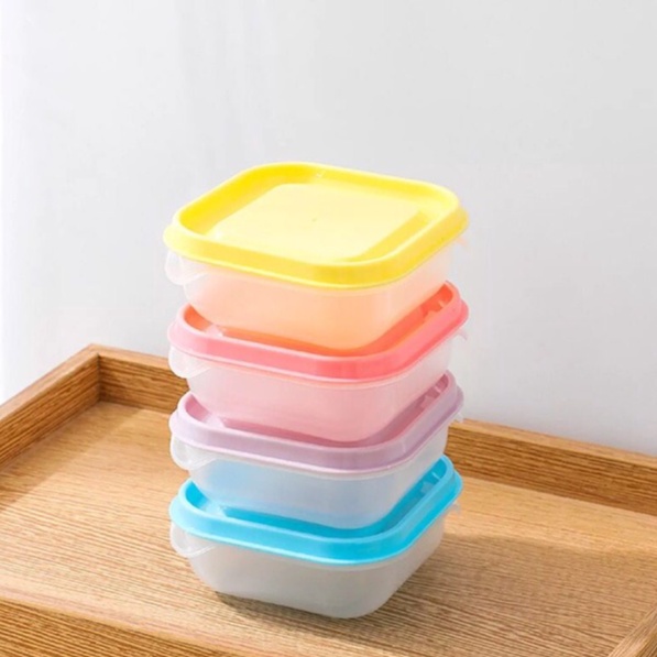 MINISO Kotak Penyimpan Makanan Plastik 4 Buah Storage Box 180ml Wadah Tempat Makanan Persegi Set Besar