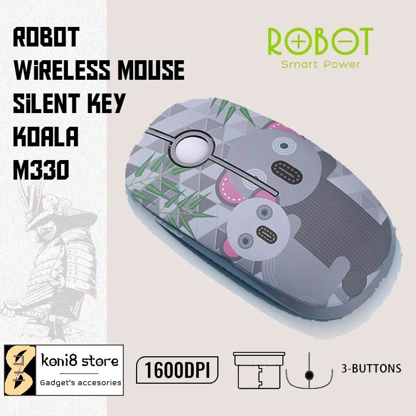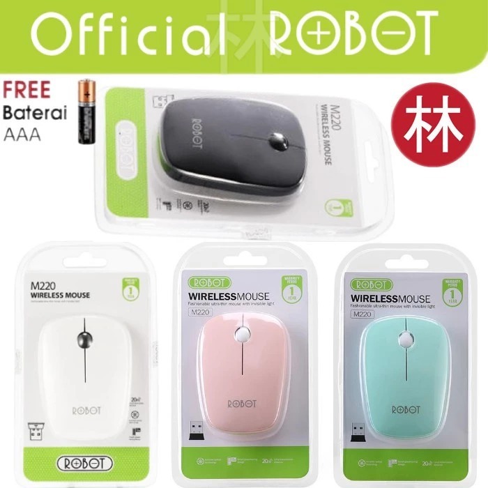 MINISO Mouse Wireless 2.4GHz Optical Sensor CM612G/ ROBOT M210 M220 M330 Mouse Wireless Receiver USB1600DPI / Mouse Laptop Komputer - Putih