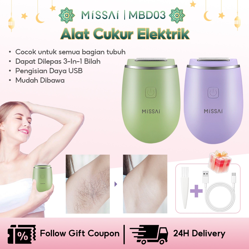 MISSAI Alat Cukur Portable Mini Alat Pencabut Bulu Ketiak Alat Pencukur Kaki Tangan Lengan Kemaluan Mini Lady Body Shaver Hair Removal Rechargeable Pencukur Bulu Ketiak Elektrik BD03 Alat Cukur Bulu Ketiak Wanita