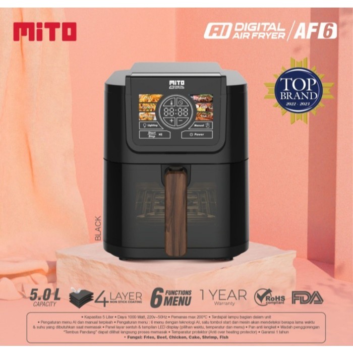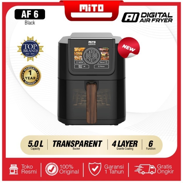 MITO Air Fryer AF6 Smart AI-Fryer Digital, Low Watt, 5L Semi Transparan, Touch Screen LED BATAM