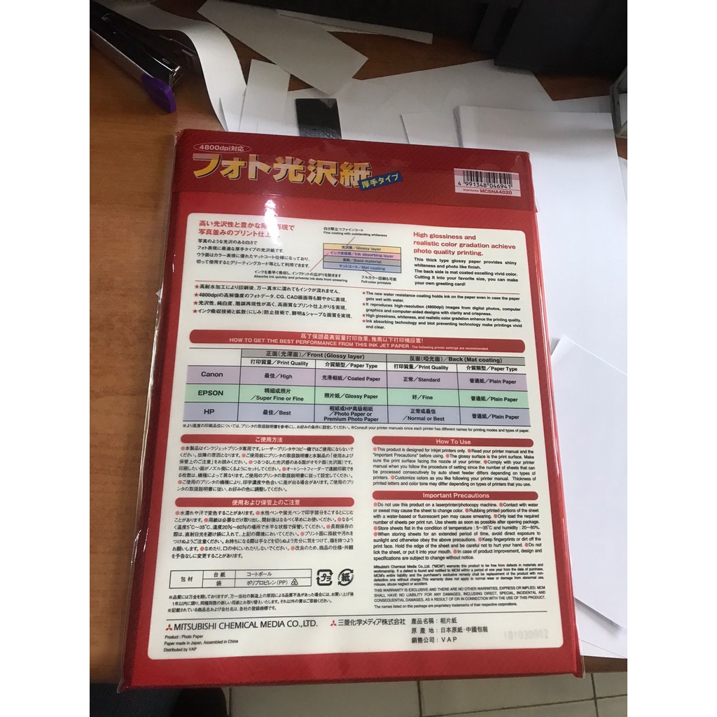 MITSUBISHI FOR INKJET PRINTER PHOTO PAPER THICK TYPE A4 20 LEMBAR