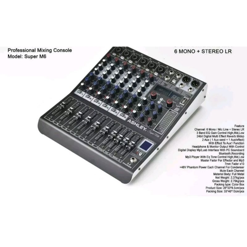 MIXER AUDIO 6CHANNEL MIXER SUPER M6 MONO + STEREO LR