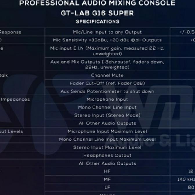 MIXER AUDIO GT LAB G 16 SUPER - G16SUPER - G 16SUPER 16 CHANNEL BY RDW