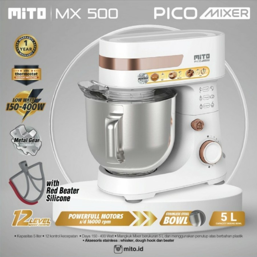 MIXER MITO MX500 KAPASITAS 5 L/MIXER MITO MX500/MX500 5L/MITO STAND MIXER MX 500/STAND MIXER
