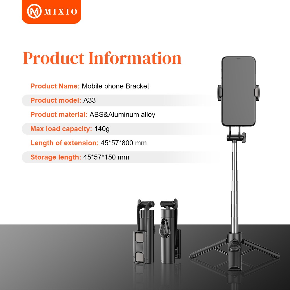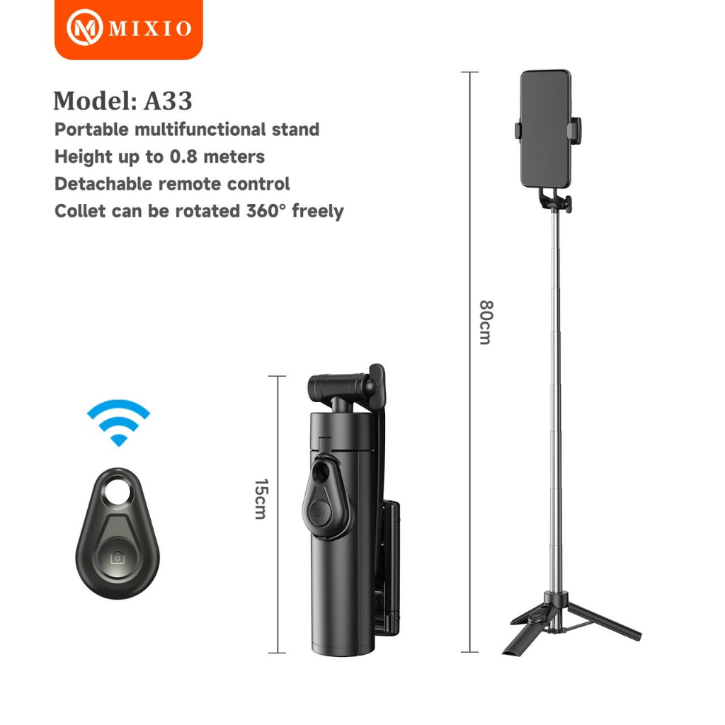 MIXIO A33 80CM Tongsis Bluetooth Selfie Stick Tripod Super Mini for Smartphone