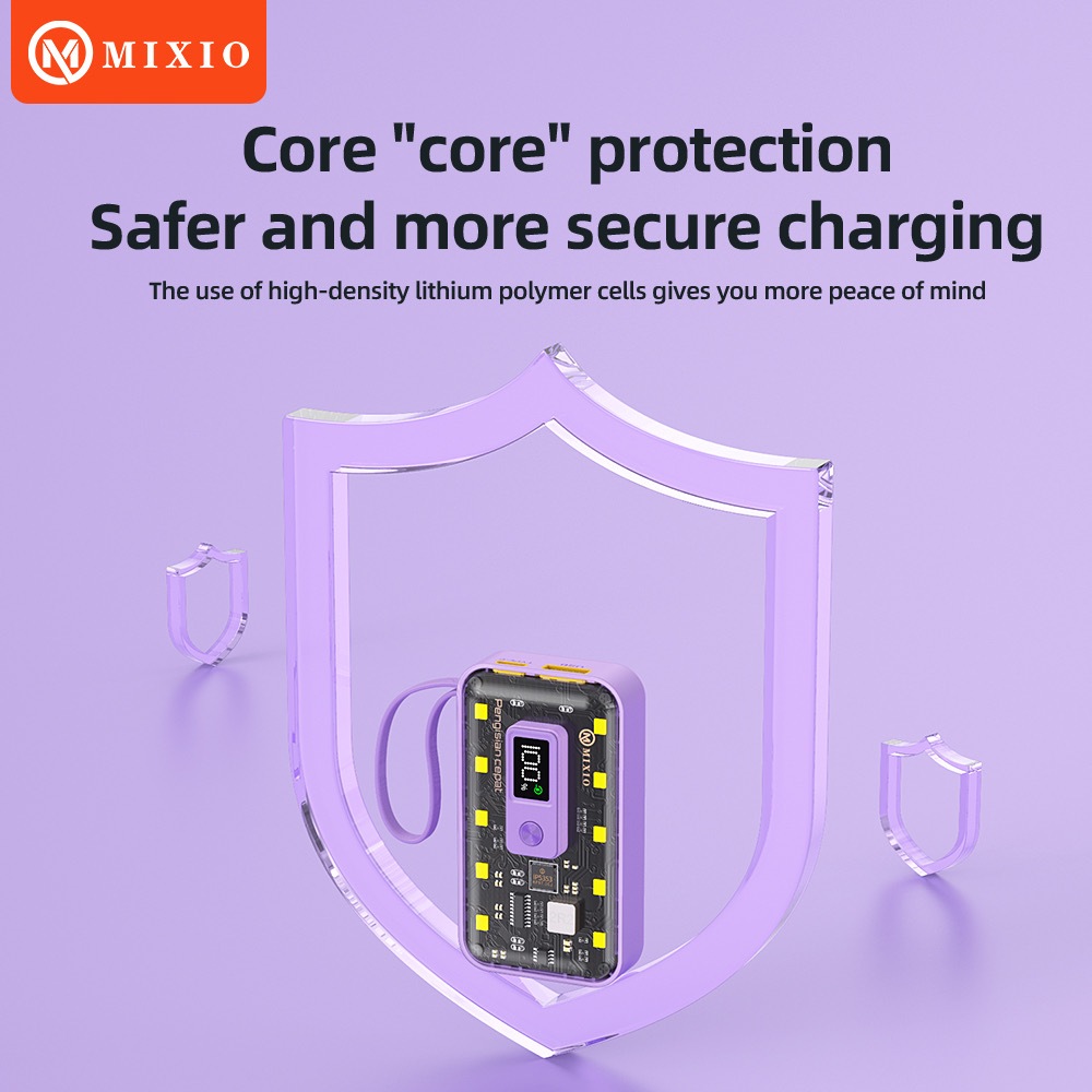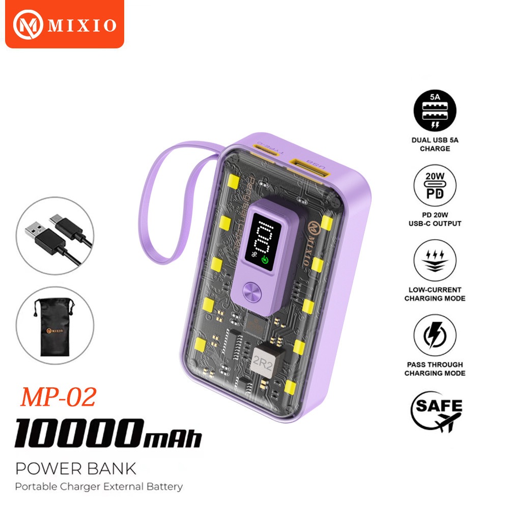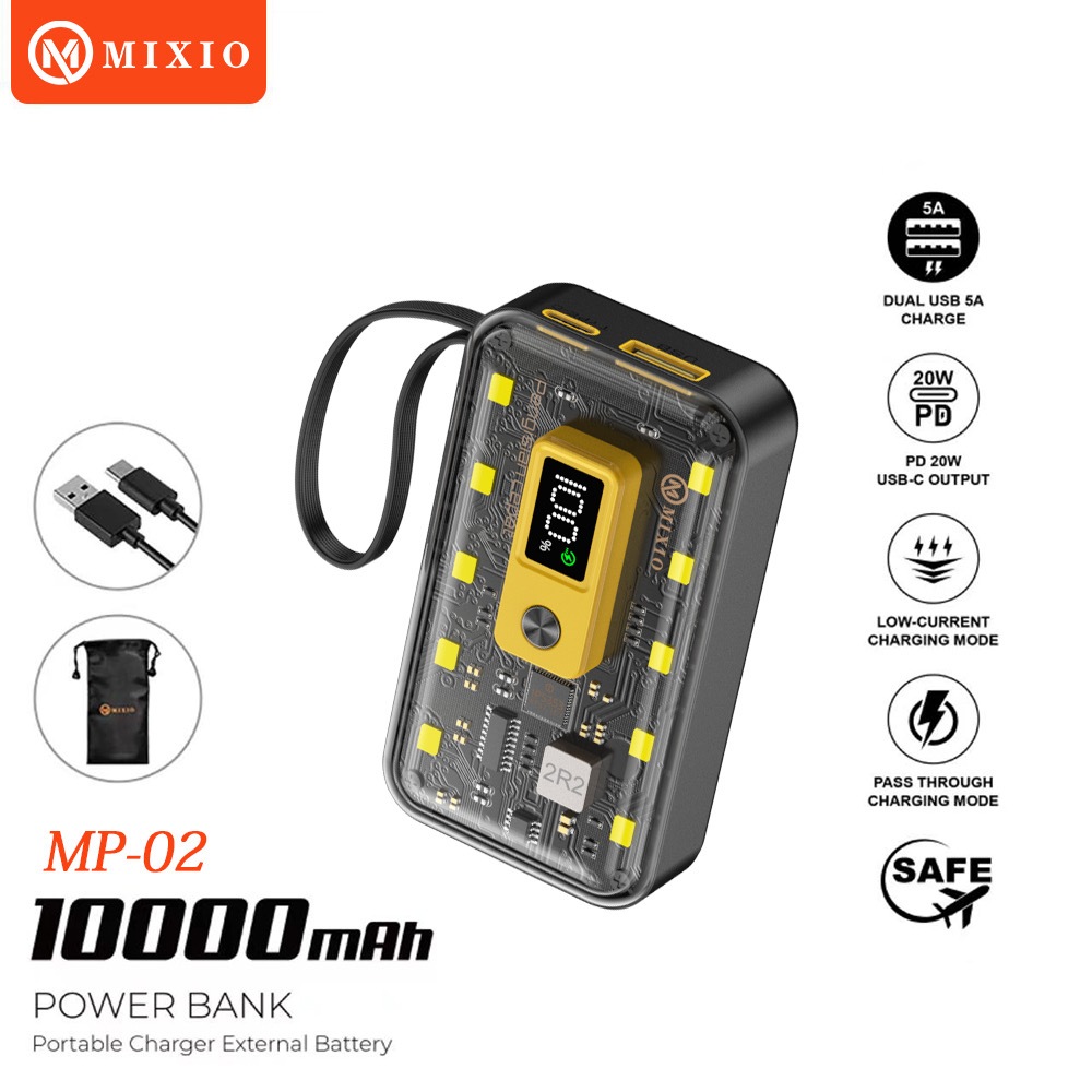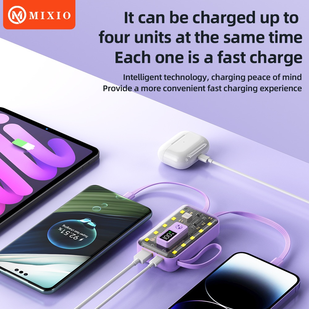 MIXIO MP-02 10000mAh 22.5W Powerbank Transparant With Kabel Fast Charging PD LED (QC4 + PD + VOOC)