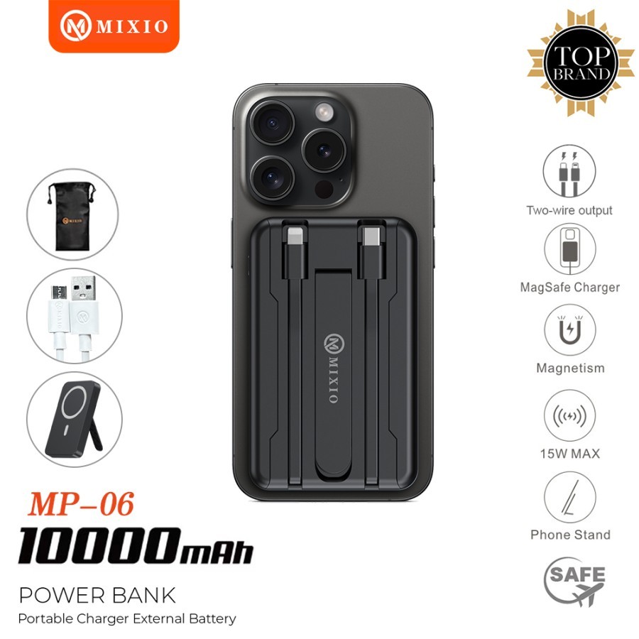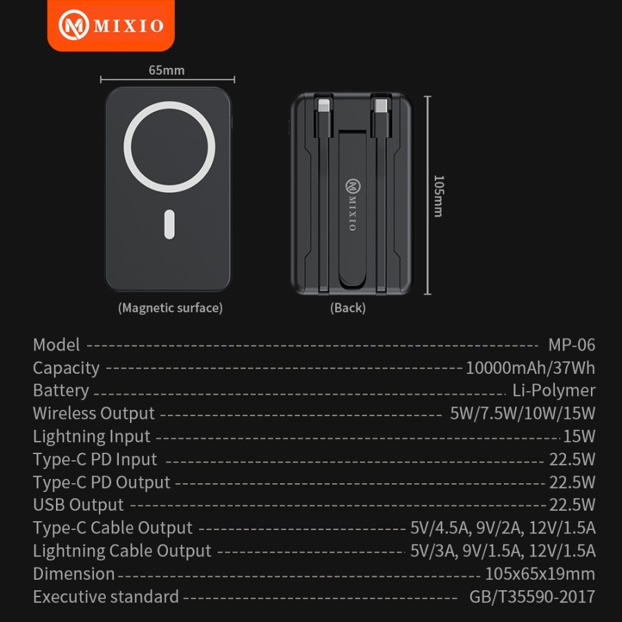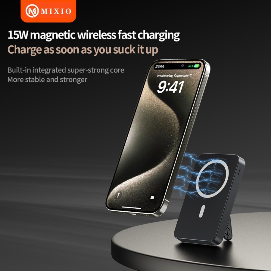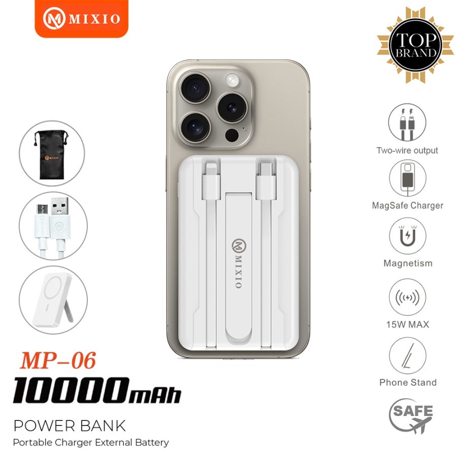 MIXIO MP-06 WIRELESS POWER BANK 10000MAH MAGNETIC MAGSAFE 20W FAST CHARGING TYPE C PD BUILD IN KABEL