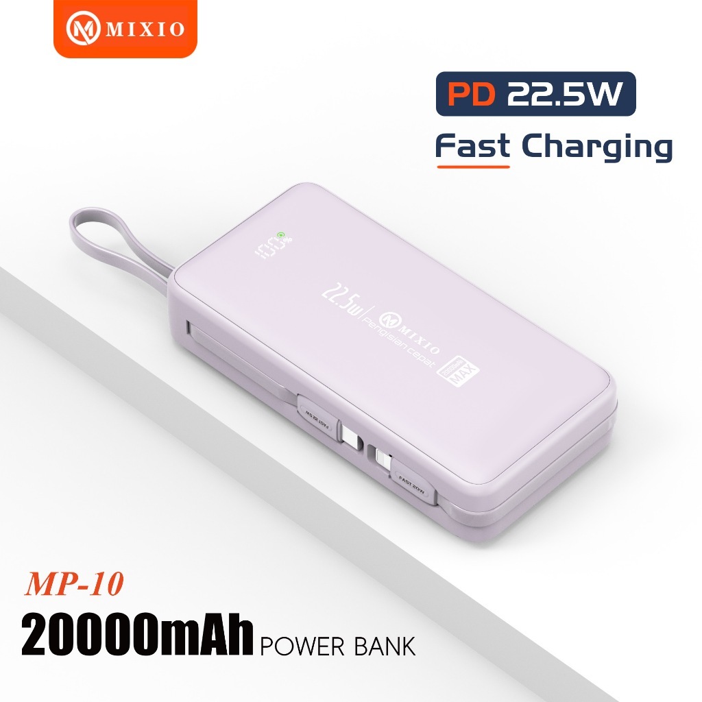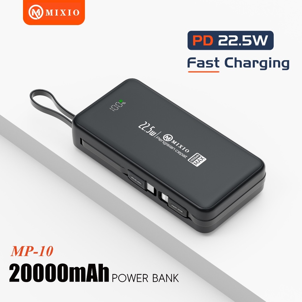 MIXIO MP-10 20000mAh Powerbank 22.5W With Kabel Fast Charging Lightning & Type C For Iphone/Android
