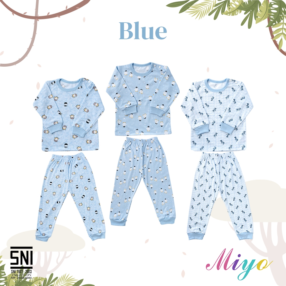 MIYO by Libby Setelan PENDEK Setelan PANJANG PRINT GIRAFFE / HEKHOK / LUMBA LUMBA / PINGU GREY / PINGU BLUE / PINGU PINK / GEORGE MONKEY / SQUIRREL Piyama Baju Bayi Libby SML kecil (6-18bulan) SNI