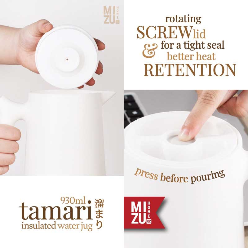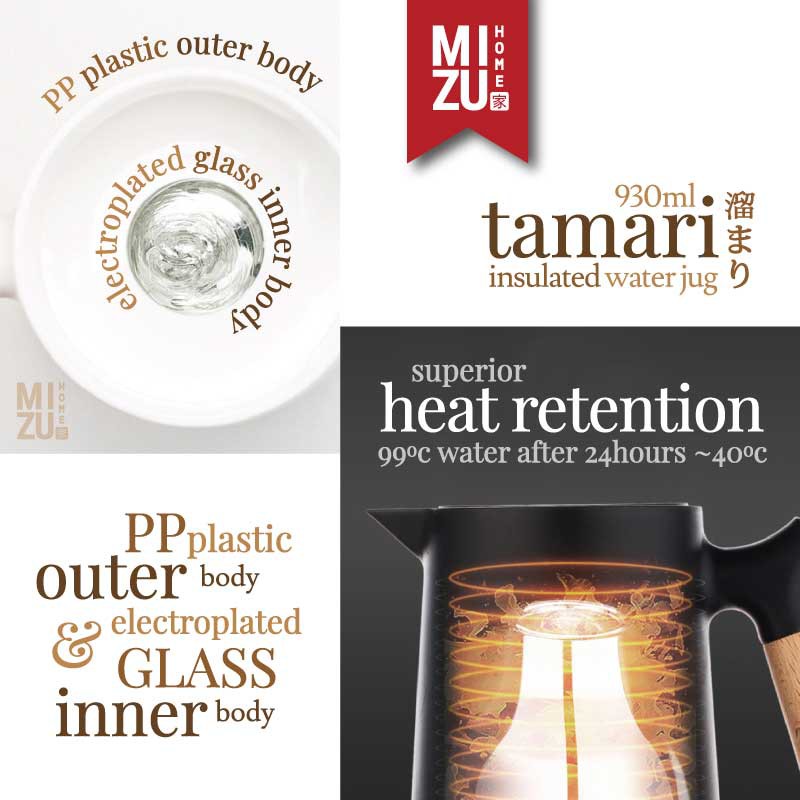 MIZU TAMARI 930ml Insulated Water Jug Teko Termos Kaca Air/Kopi/Teh Panas/Dingin Thermos Glass Jug