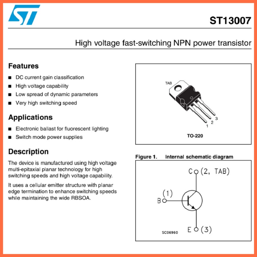 MJE 13007 ST13007A Transistor Switching Audio High Voltage Fast-switching NPN Power Transistor ST 13007A 13007