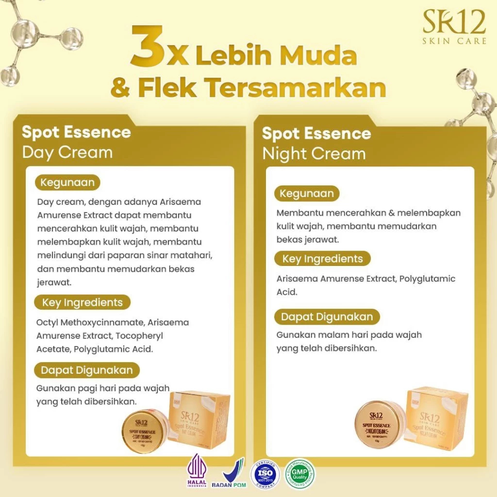 SR12 Skincare Spot Essence Day & Night Cream 10 g - Krim Wajah Siang & Malam Melembabkan & Mencerahkan Wajah dan Menghilangkan Flek Hitam & Bekas Jerawat