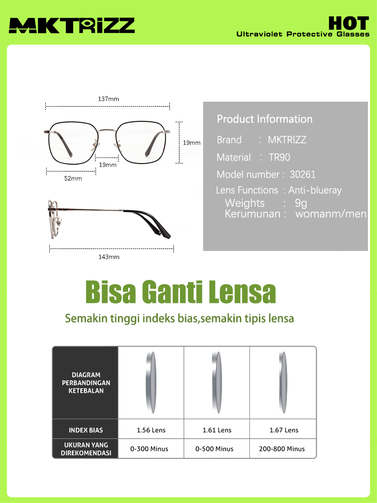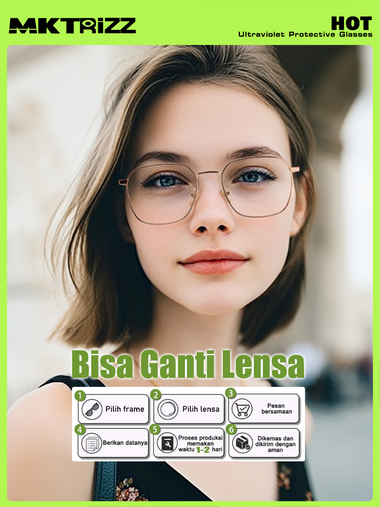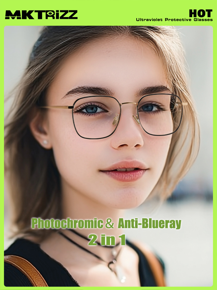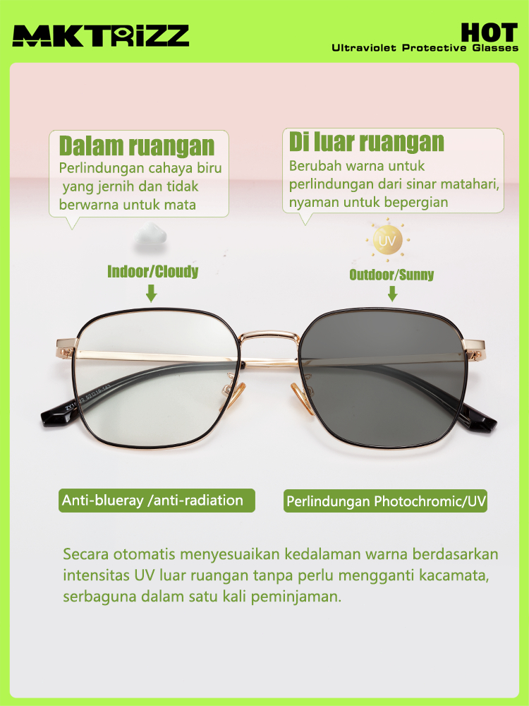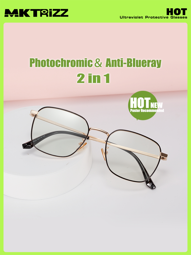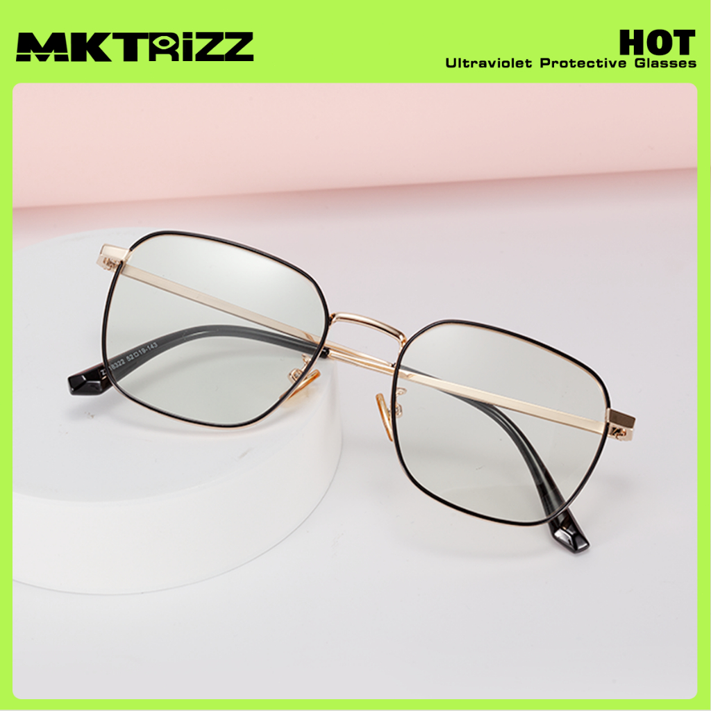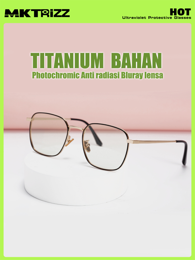 MKTRIZZ 2 In 1 Photochromic Kacamata Anti Radiasi Blueray UV Minus Pria Wanita Black Gold 18322
