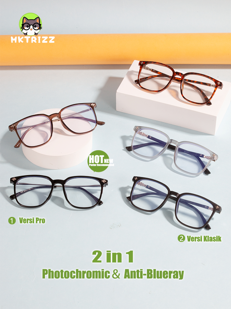 MKTRIZZ Kacamata Anti Radiasi Photocromic Kacamata Unisex Wanita Pria Eye Minus Frame Gently Korea