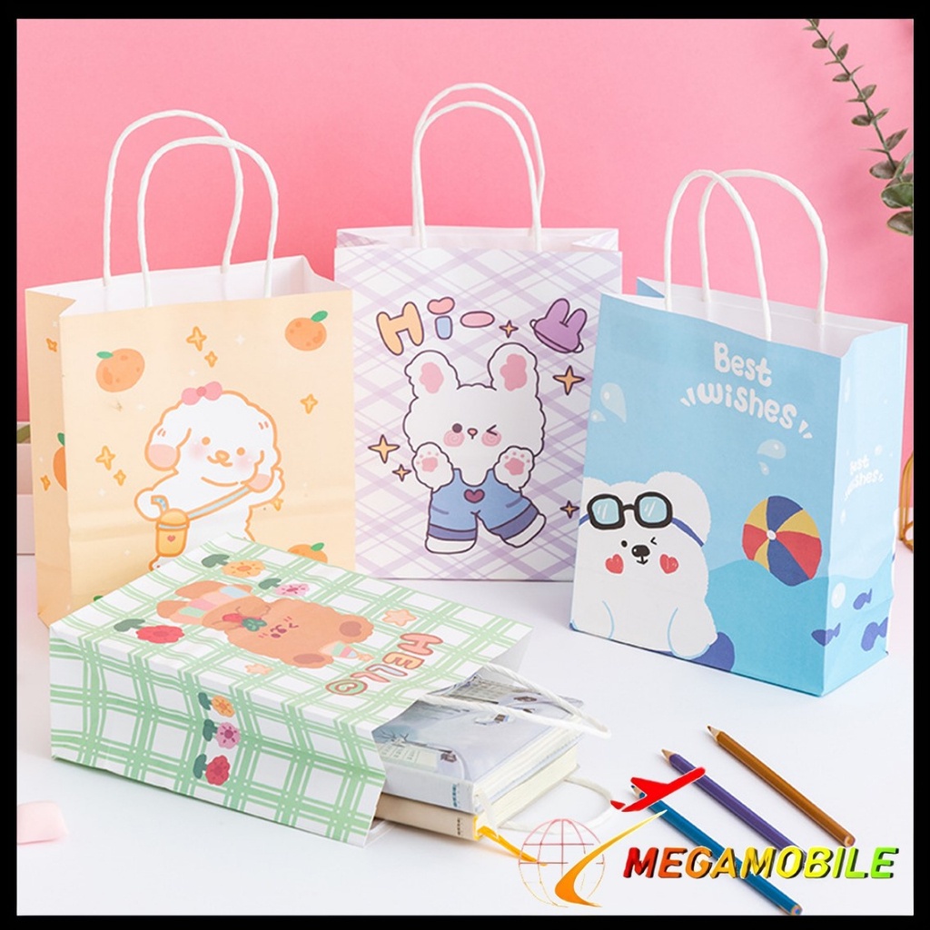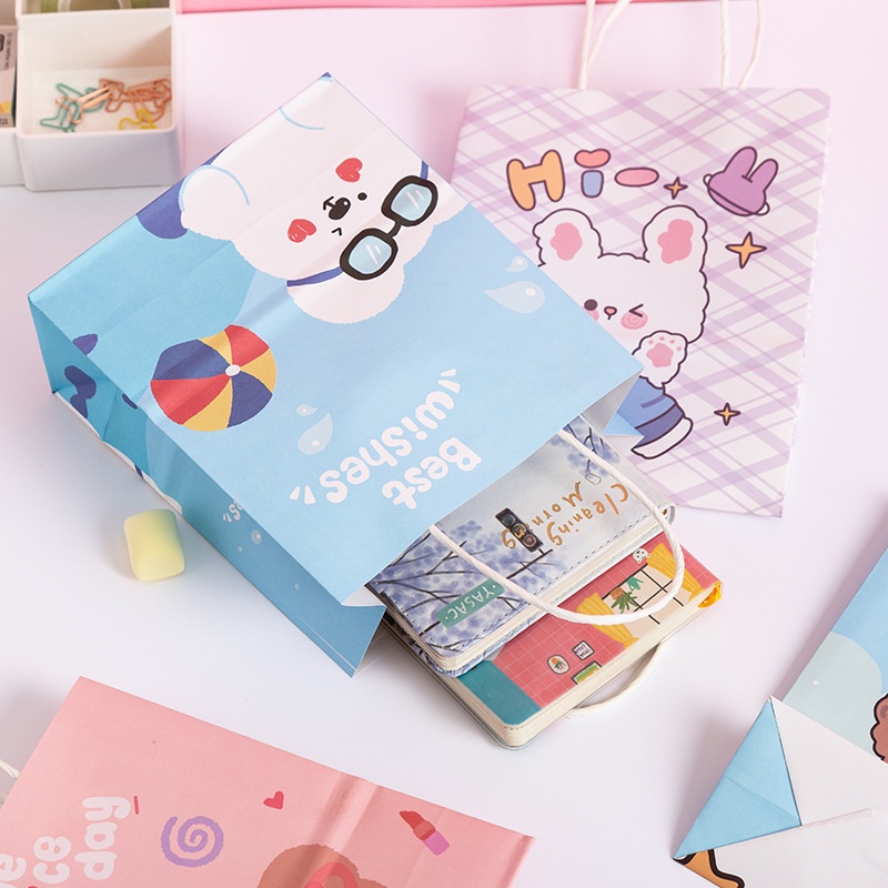 MM - Paperbag Karakter Kartun Beruang Lucu Goodie Bag Motif Rabbit & Bear Tas Jinjing Serbaguna Bingkisan Hadiah Hampers Ulang Tahun Anak Kotak Souvenir Kantong Tentengan Bingkisan Paper Bag Kertas Mini Lucu Aesthetic