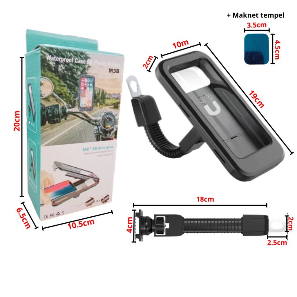 MM - Phone Holder Hp Spion Motor Waterproof M3B Tempat Handphone Sepeda Motor Holder Spion Stand Bracket HP dan GPS Anti Slip 360 Derajat Murah