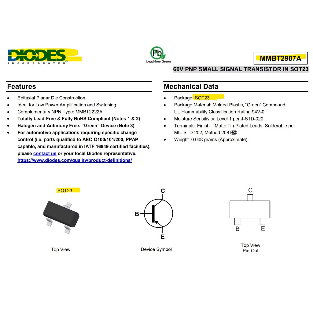 MMBT2907A 60V 600mA PNP Bipolar Transistor 2907 2F K2F MMBT2907 SOT-23 Diodes ORIGINAL
