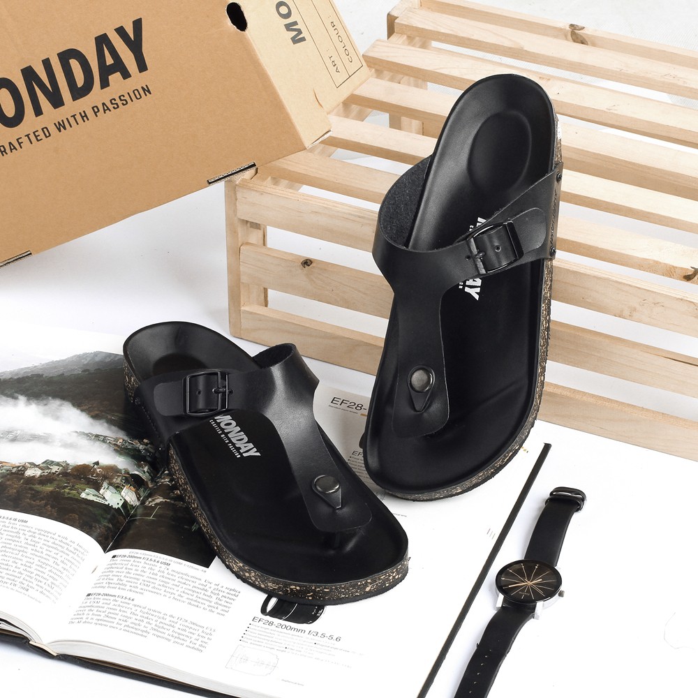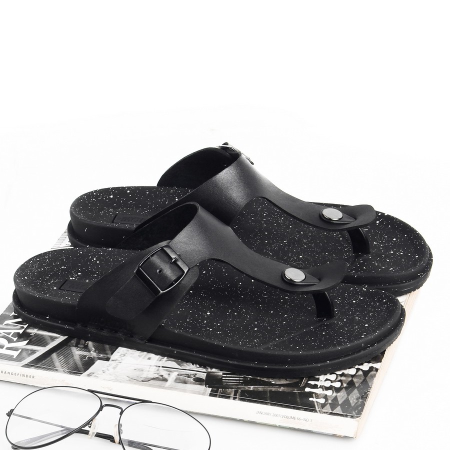 Monday Official - Asta Full Black - Sandal Jepit Kulit Pria