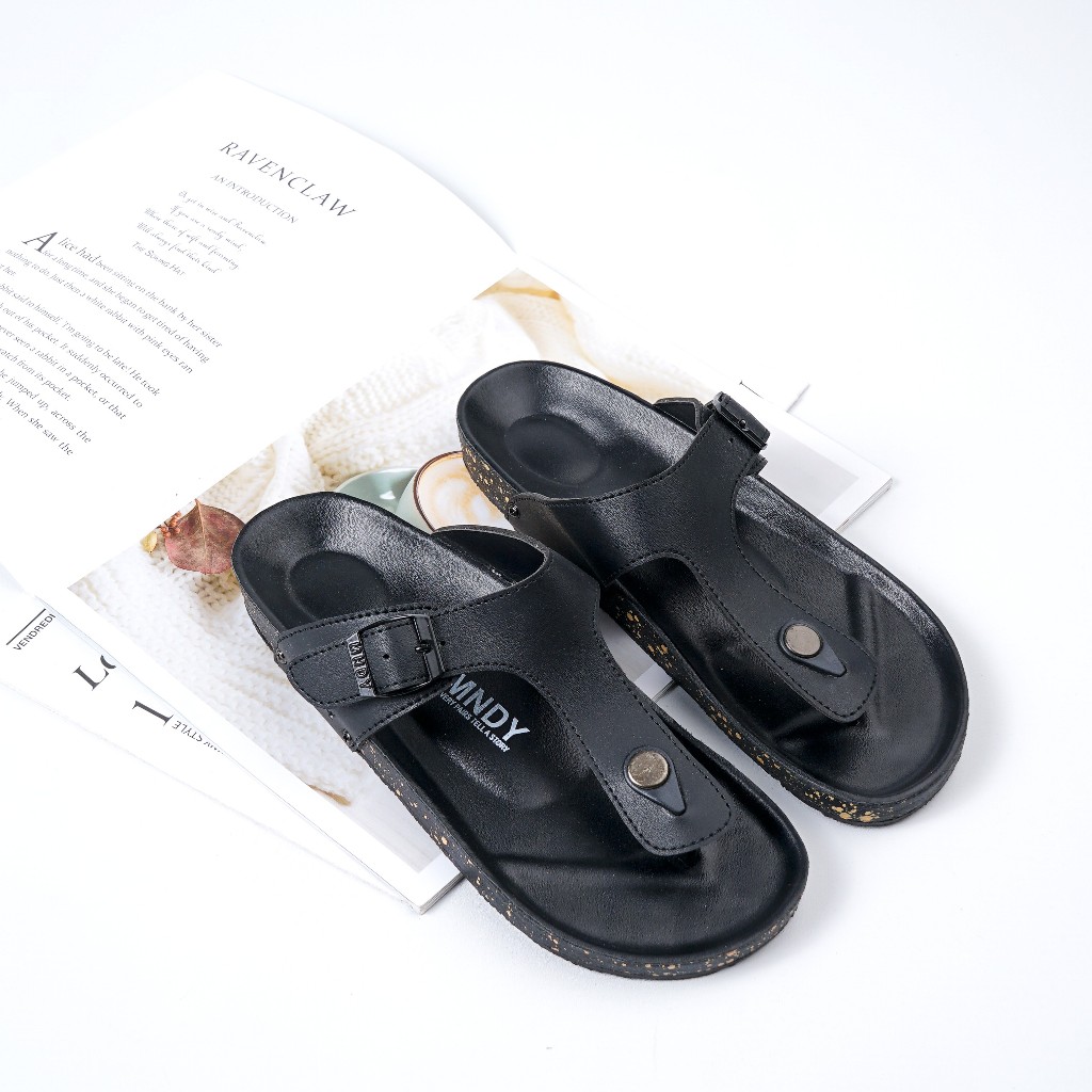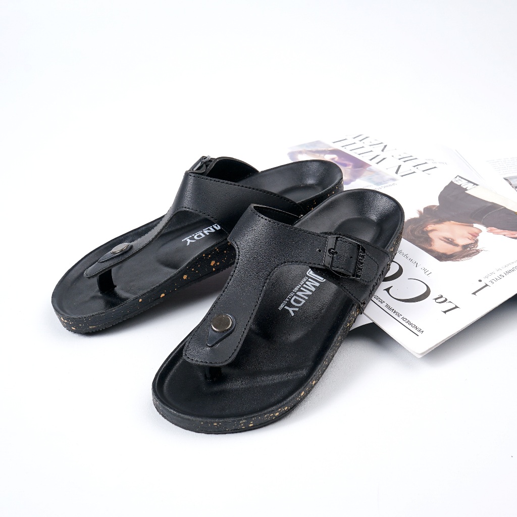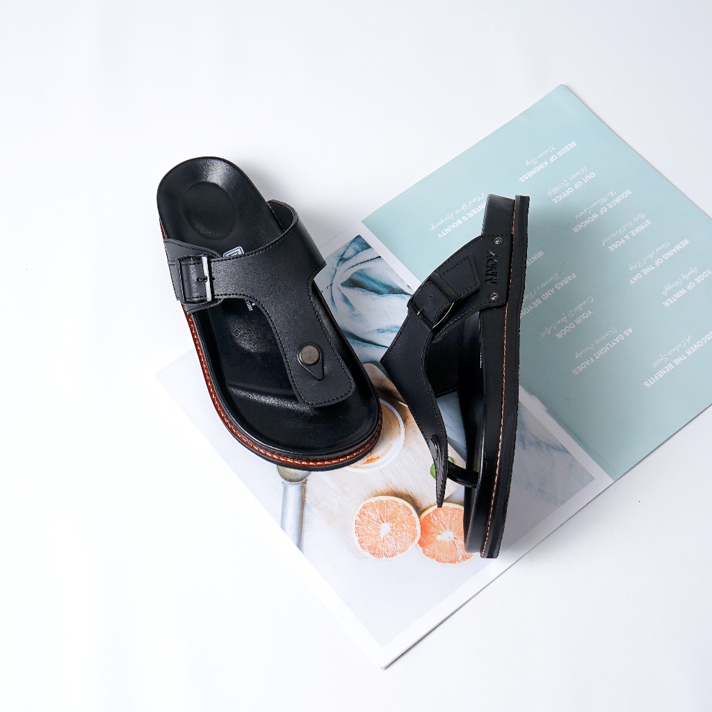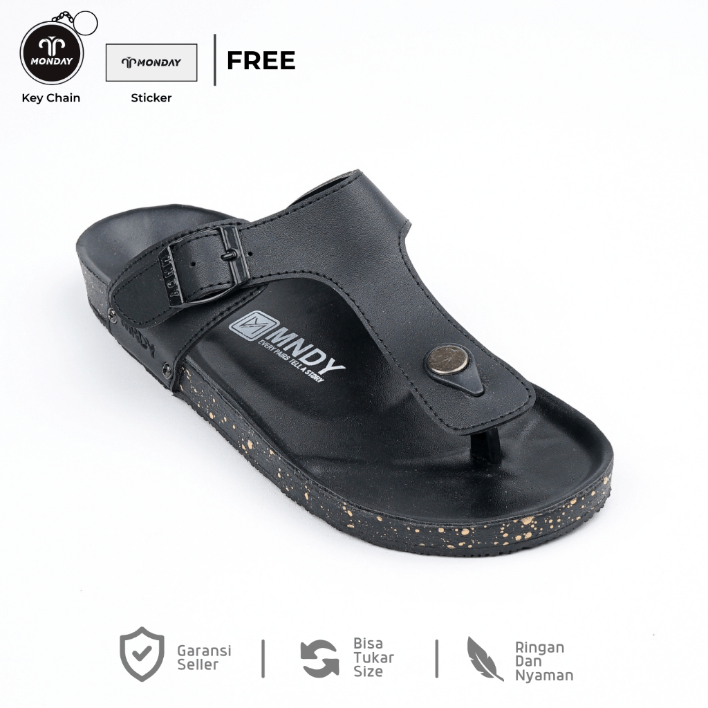Monday Official - Asta Full Black - Sandal Jepit Kulit Pria Wanita Casual