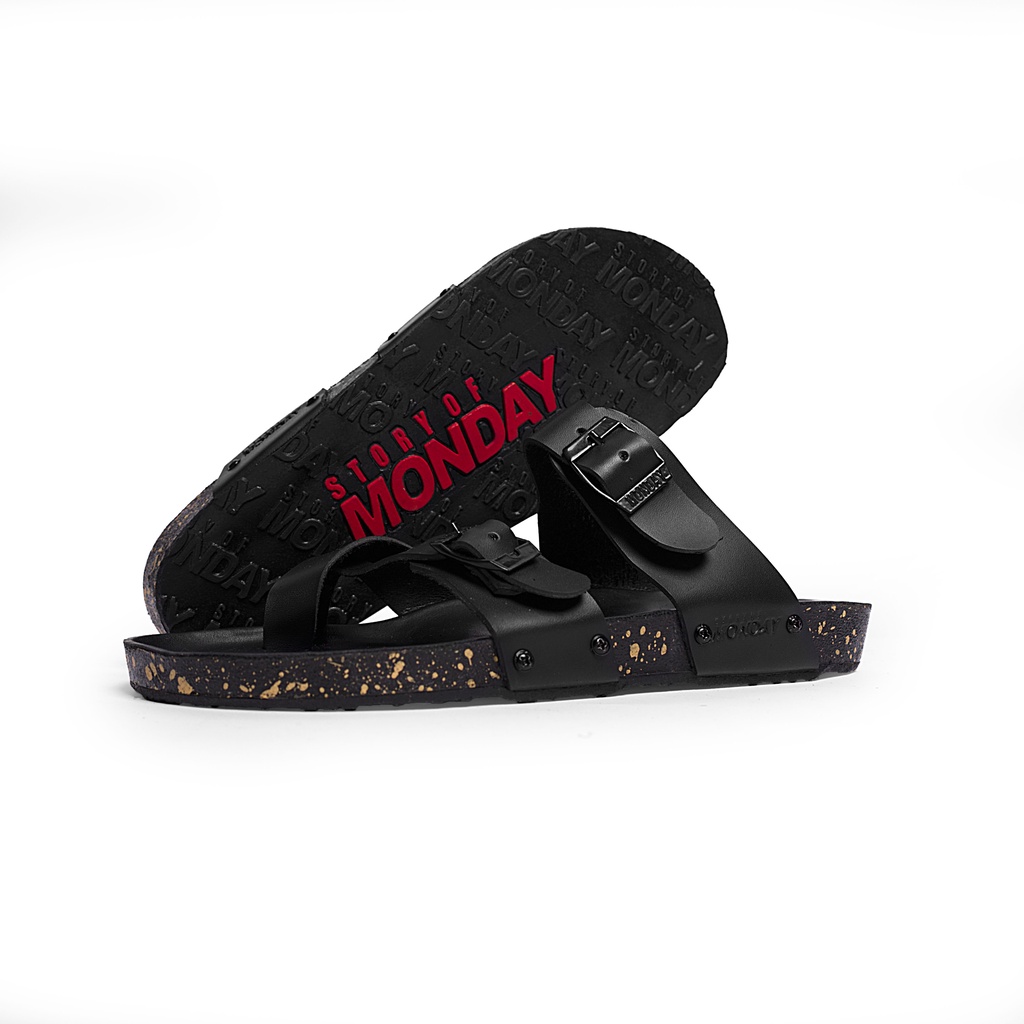 MNDY Official - Jack Full Black - Sandal Slip-on Kulit Casual Hitam Unisex JAC-FB