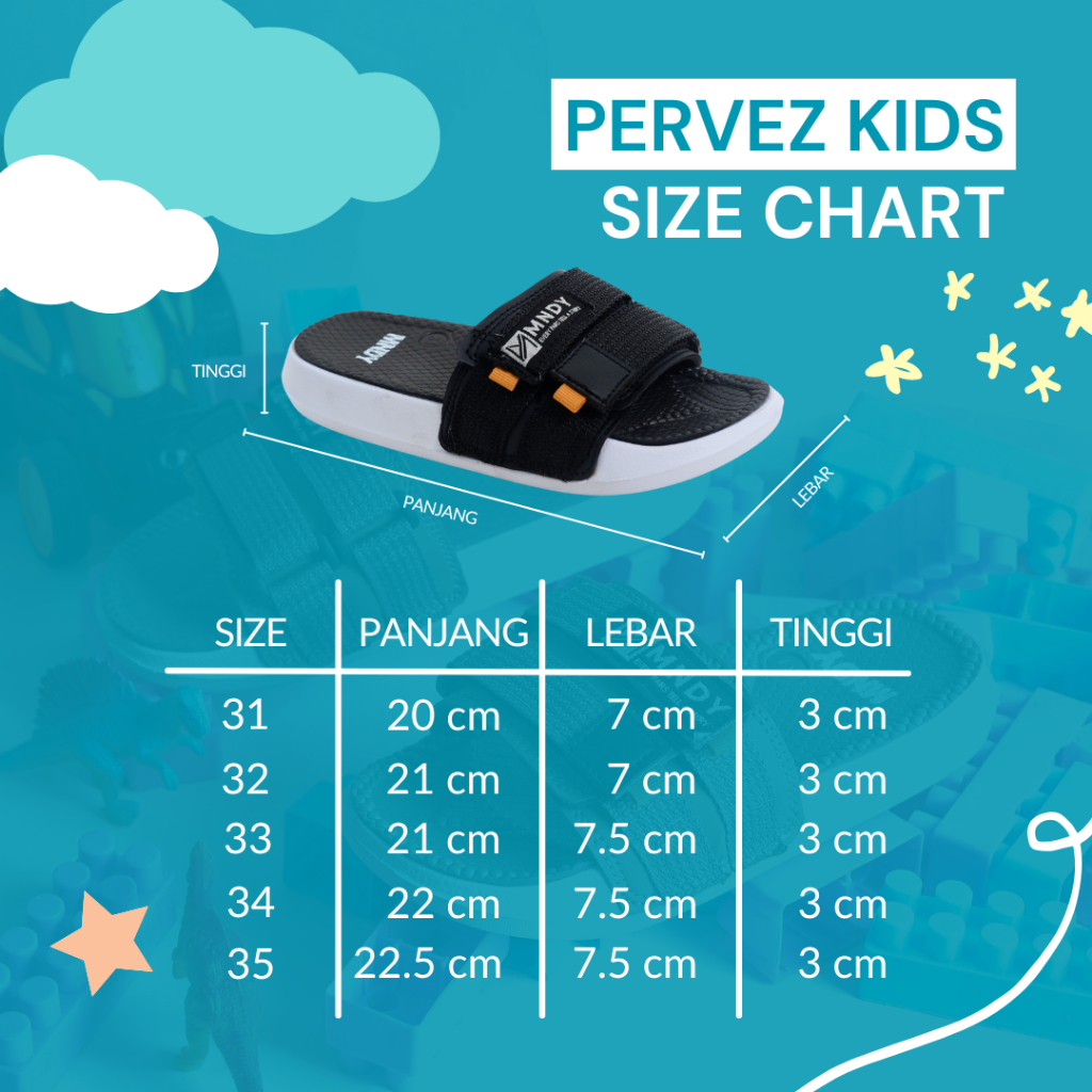 MNDY Official - Pervez Black Kids - Sandal Anak slide ringan sendal main traveling hotel rumah