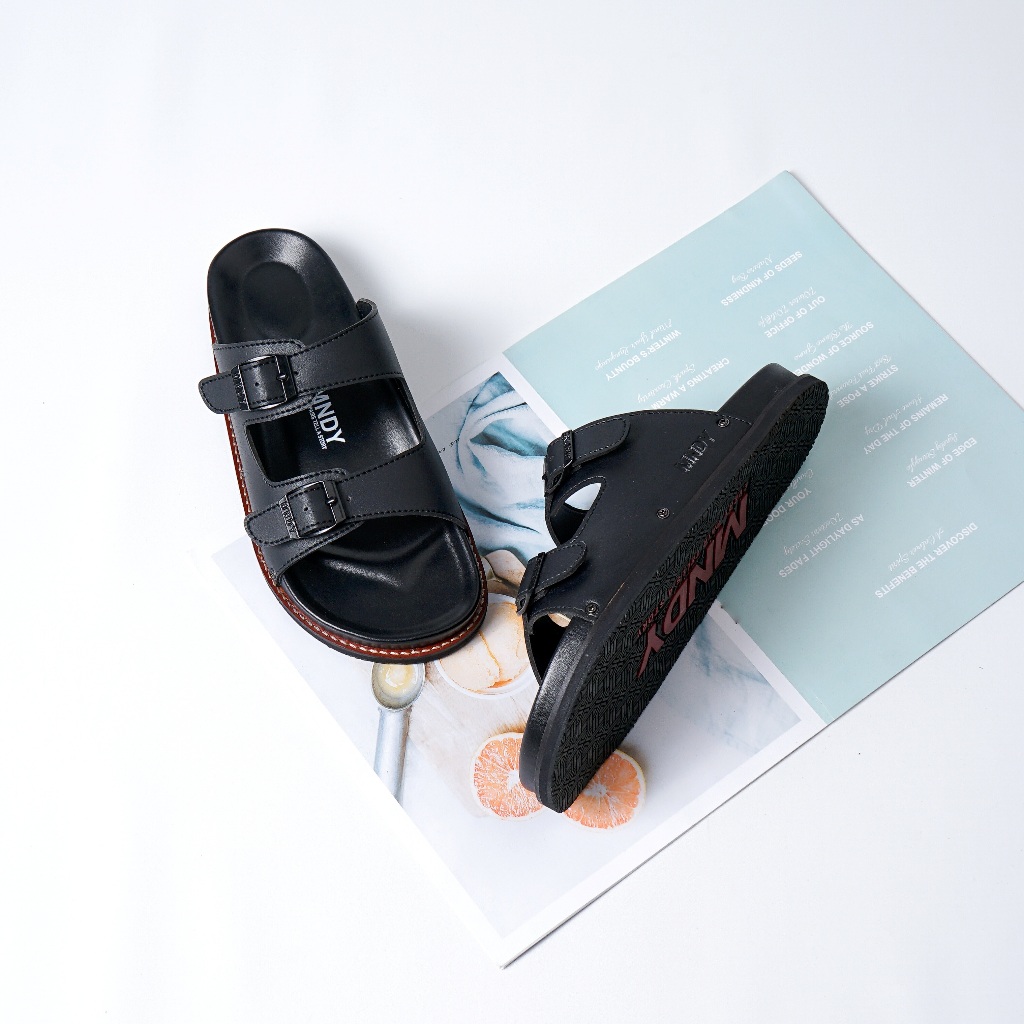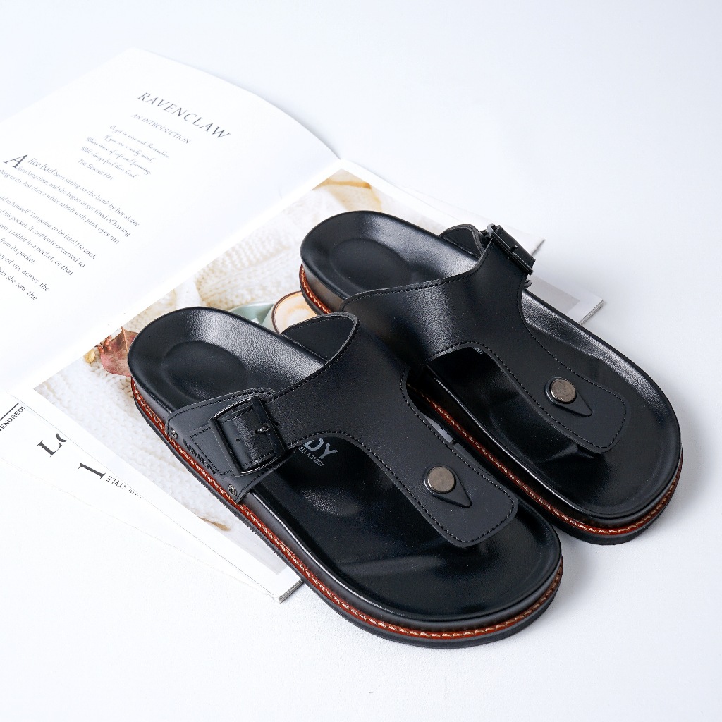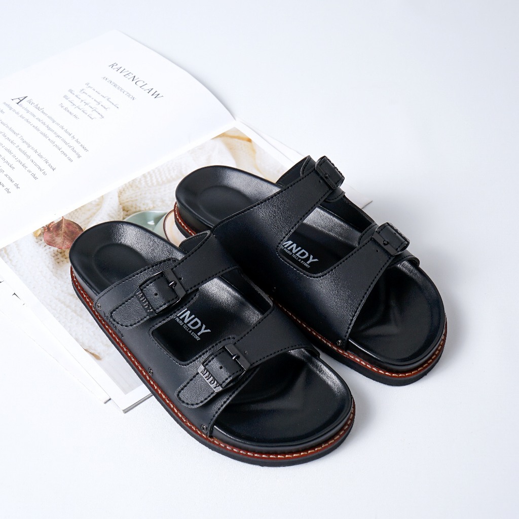 Monday Official - Yuno Bold V2 - Sandal Selop Casual Kulit Hitam Pria Wanita
