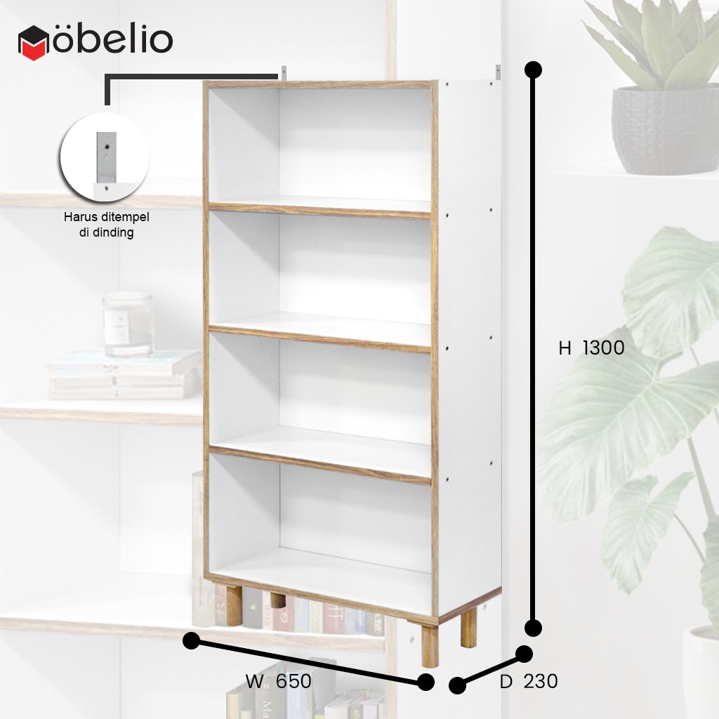 MOBELIO - Rak Buku Portable Serbaguna Minimalis 4 Rak Putih List Coklat - BC4T