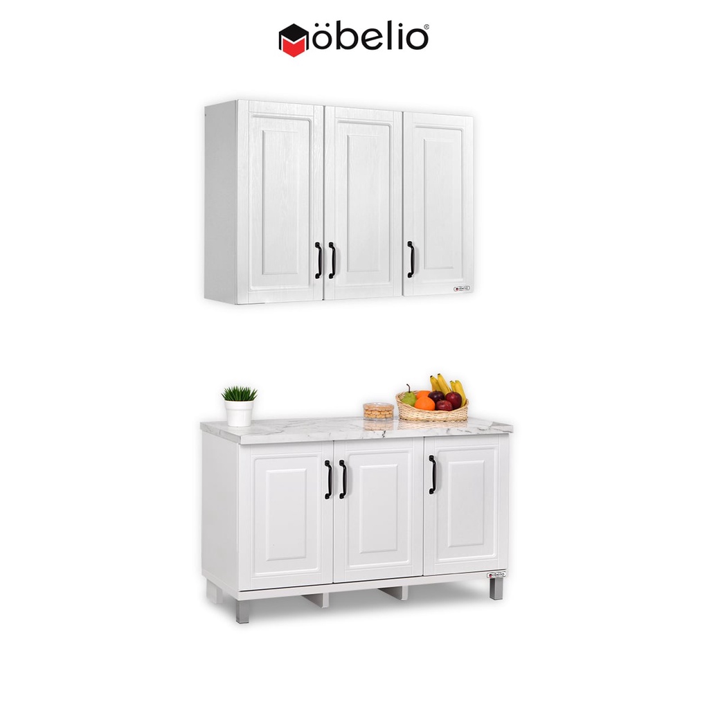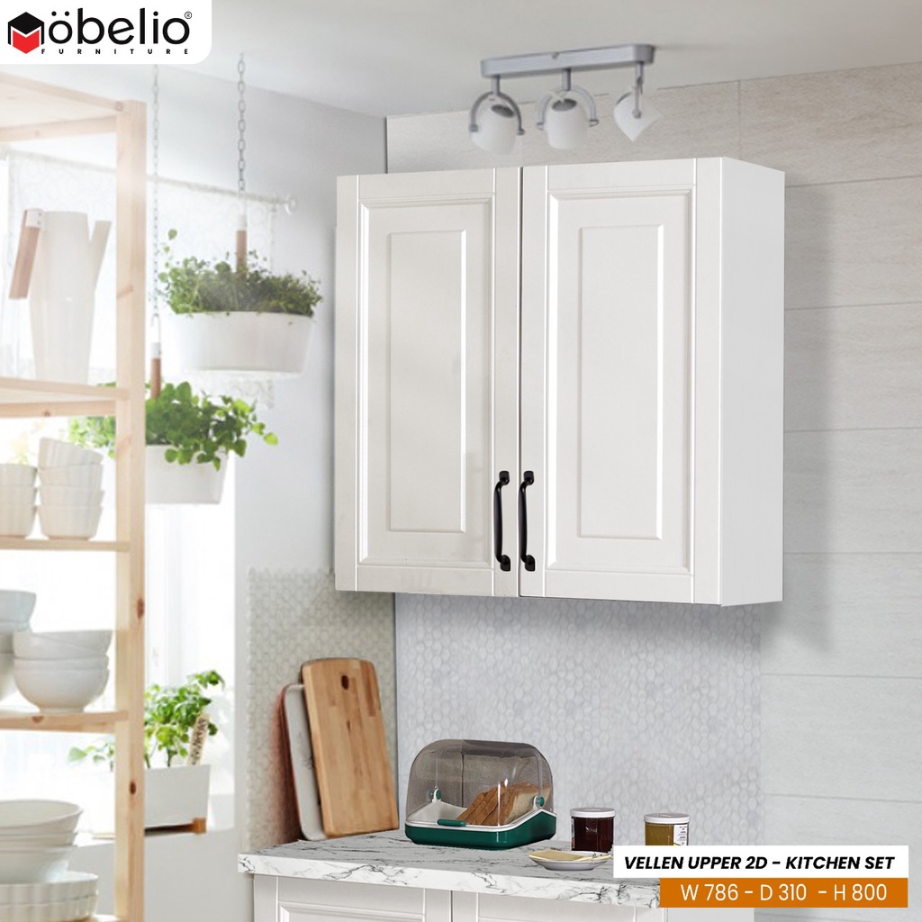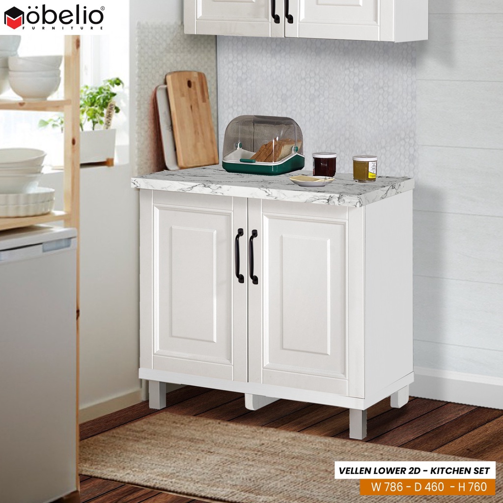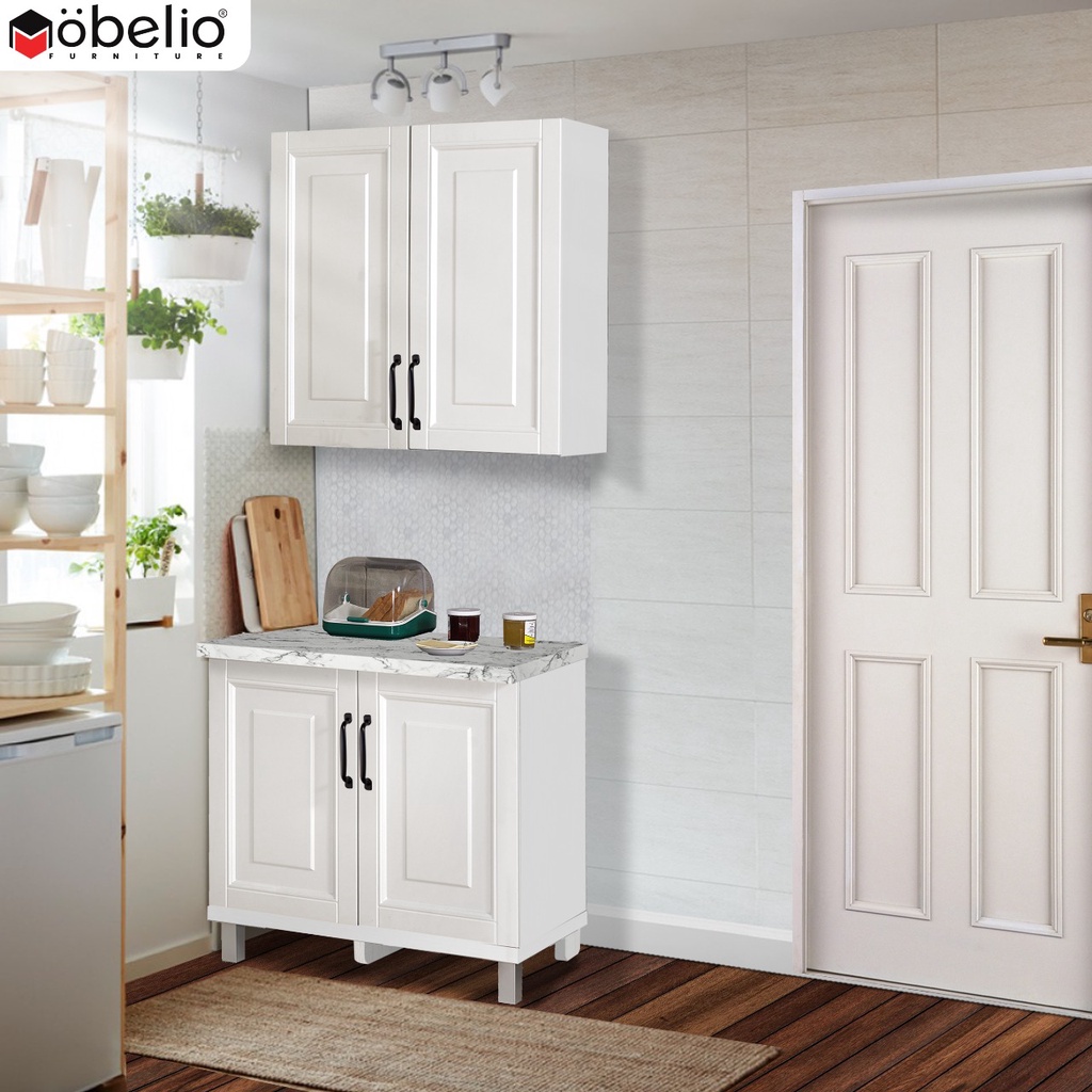MOBELIO - Kitchen Set Lemari Atas Bawah 2 dan 3 Pintu Minimalis Scandinavian White Putih - Mutiara