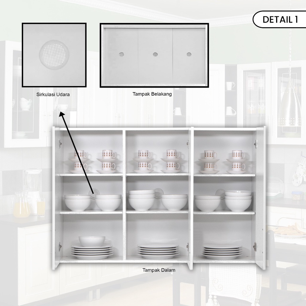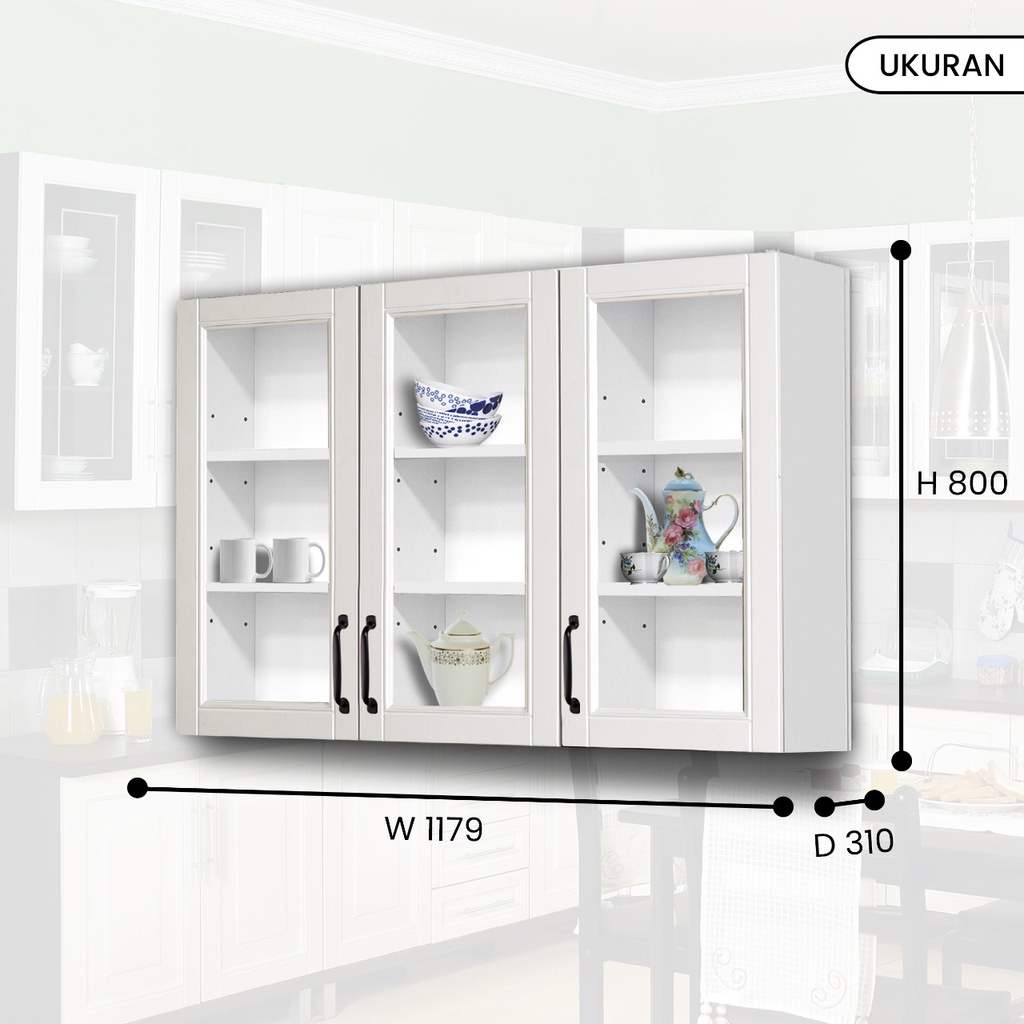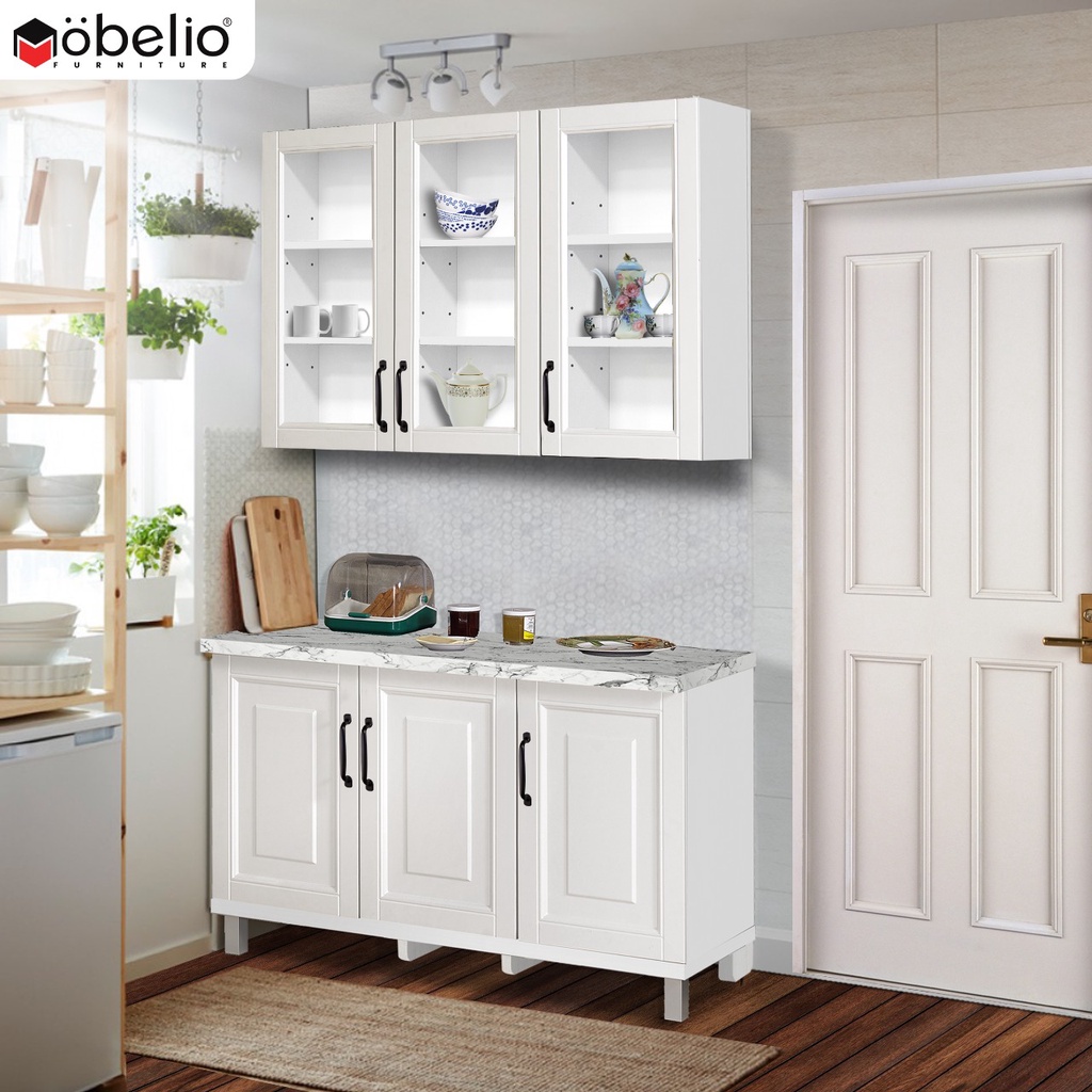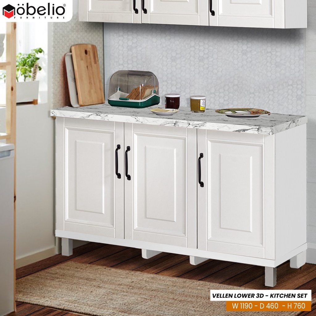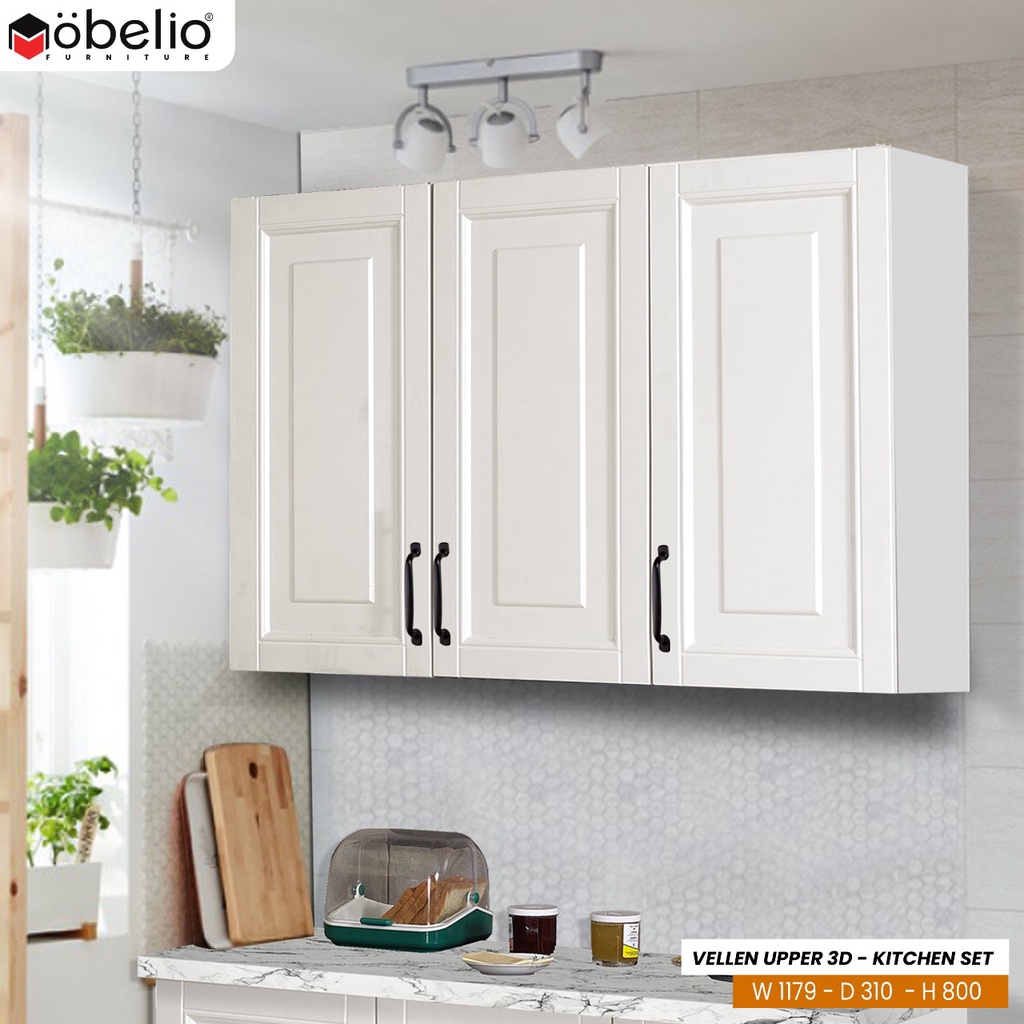 MOBELIO - Kitchen Set Lemari Atas Bawah 2 dan 3 Pintu Minimalis Scandinavian White Putih - Mutiara