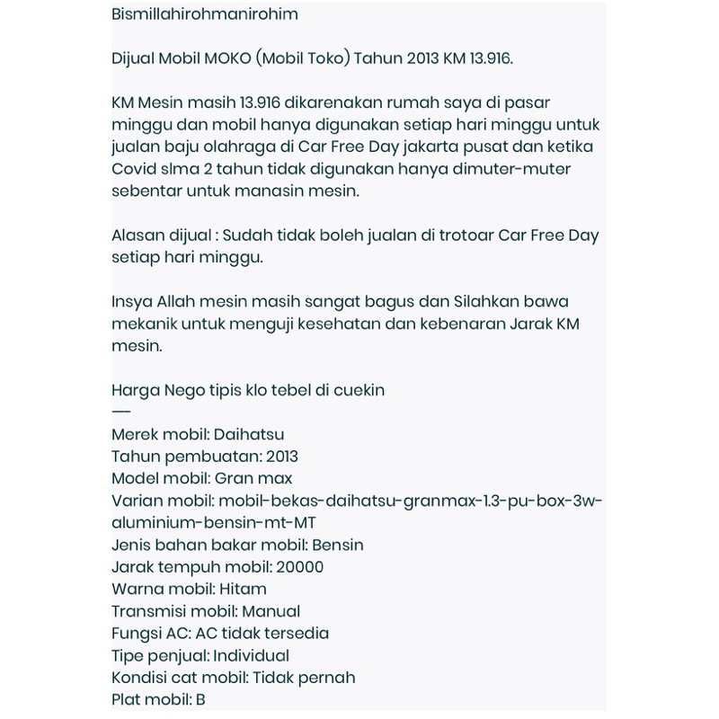 MOBIL BOX GRAN MAX GRAND MAX tahun 2013 mulus mobil toko / moko grand max