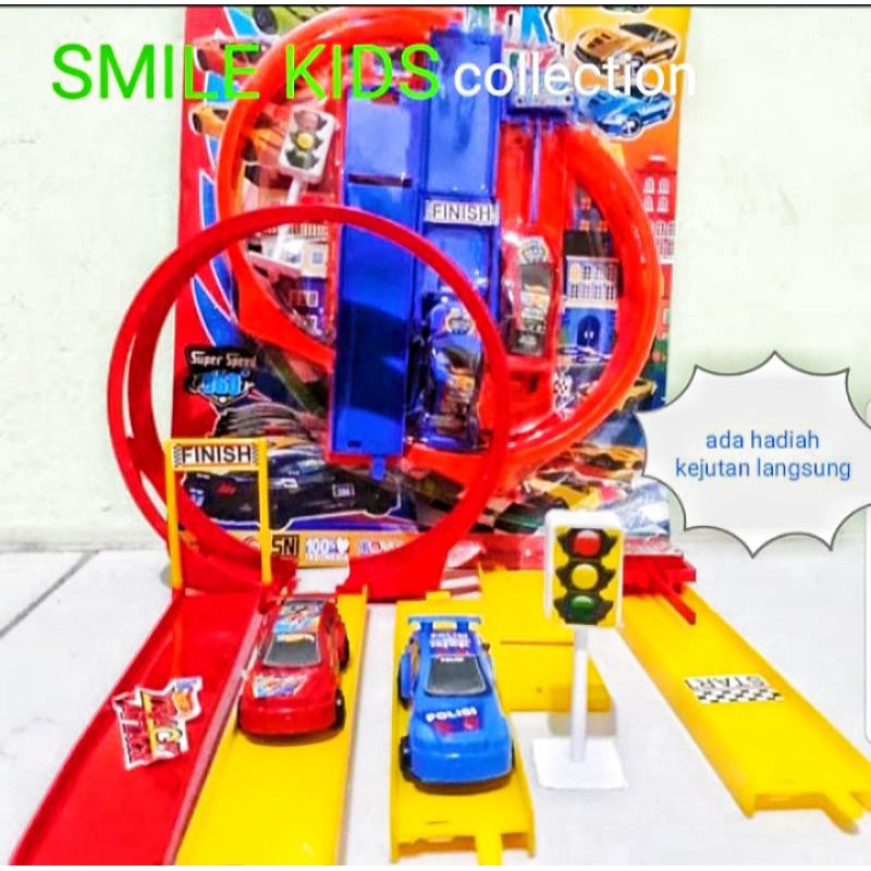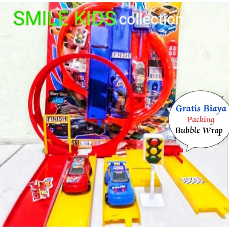 MOBIL MOBILAN TRACK RACE Fullset 2pcs mobil Dilengkapi dengan Area track jalan mainan anak SNI Merek Ocean