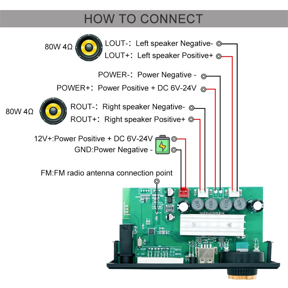 MODUL AMPLI 2X80W AMPLIFIER BLUETOOTH RADIO MIC USB CARD AUX DC 7/25V