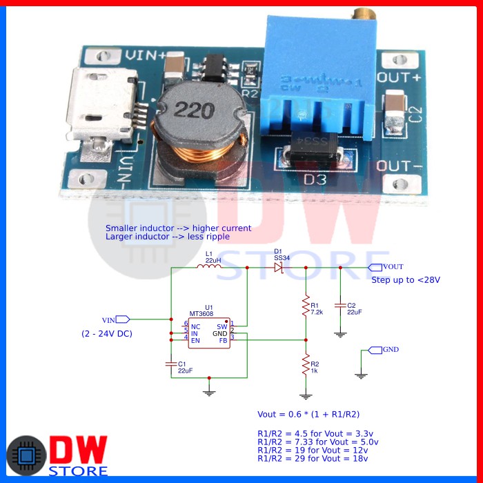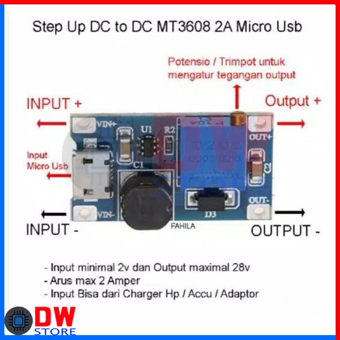MODUL MT3608 MT 3608 DC-DC STEP UP CONVERTER 2A PORT MICRO USB MIKRO