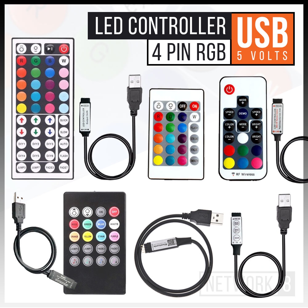 MODUL REMOT KONTROL REMOTE CONTROLLER LAMPU LED STRIP RGB BLUETOOTH MUSIK RF 3 24 44 KEYS USB 5V 2835 5050 4 PIN 4PIN