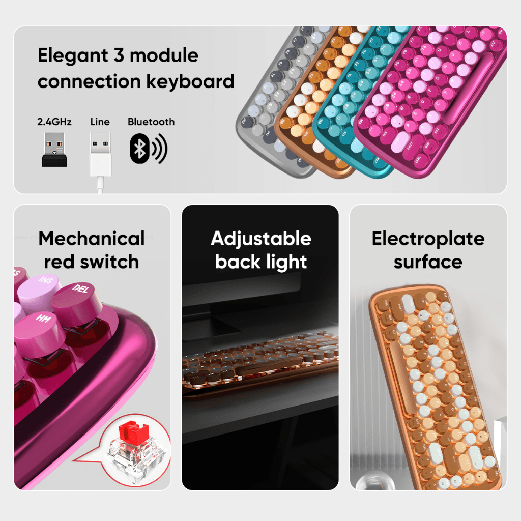 MOFii Mechanical Keyboard Bluetooth Wireless 3 Model RGB Light Red Switch Rechargeable Battery ROMI