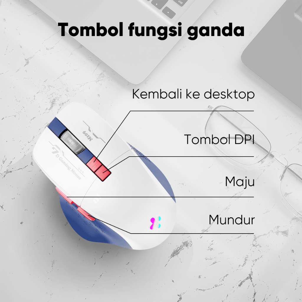 MOFii Mouse Wireless Gaming Rechargeable Baterai Type-C Fast Charging 1600DPI RGB Light M109