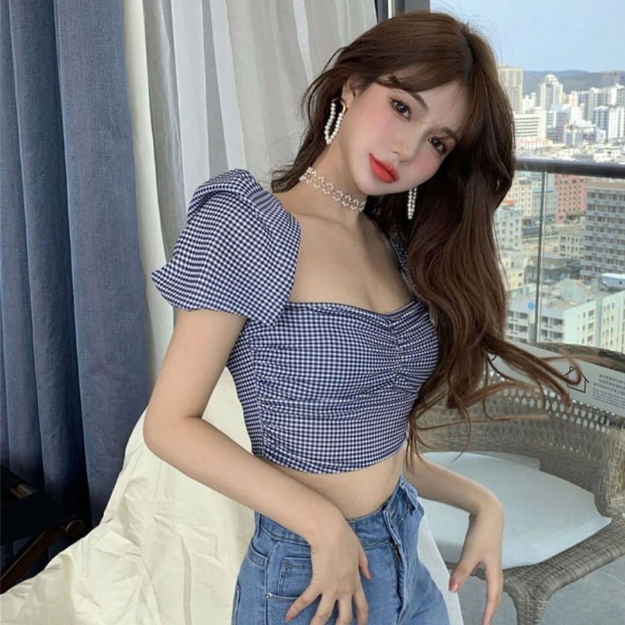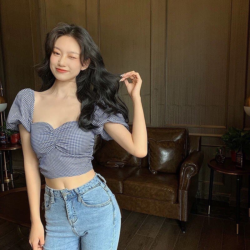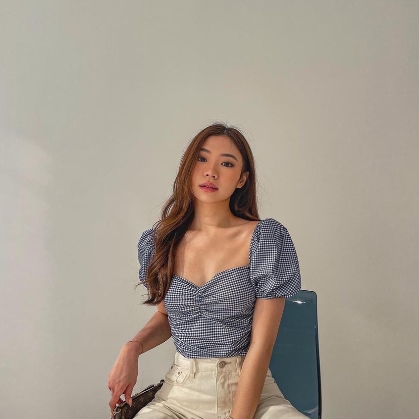 𝐑𝐄𝐀𝐃𝐘 𝐒𝐓𝐎𝐂𝐊 𝐒𝐀𝐅 - MOLITA NAVY plaid handy crop top woman premium / korean summer top / beachwear bali / baju atasan wanita lengan pendek / crop top atasan wanita / vintage top / casual top / party top / baju pantai wanita / bohemian top / baju bali
