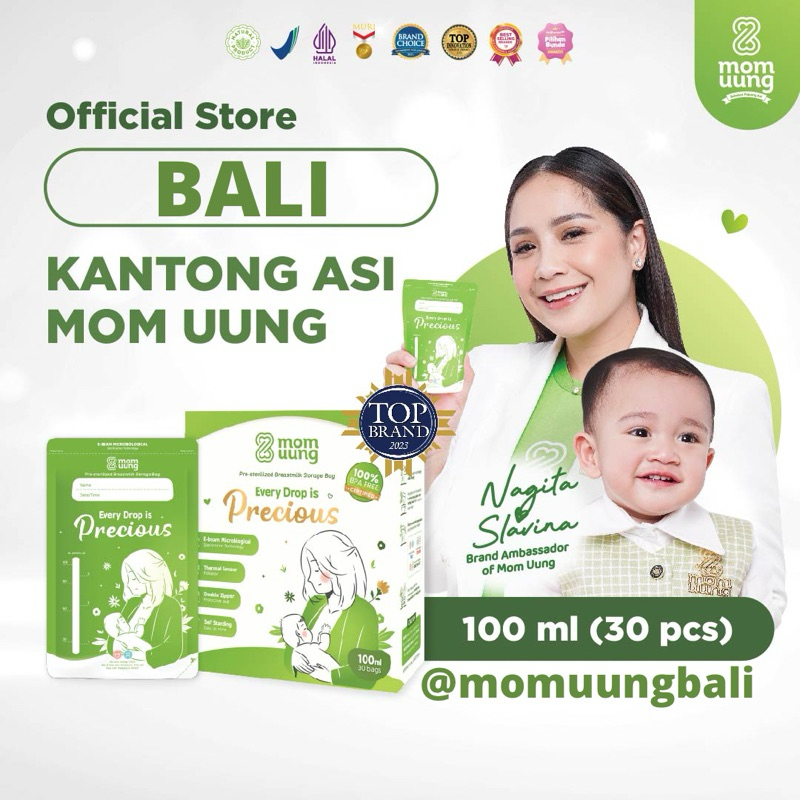MOM UUNG BALI PRE-STERILIZED BREASTMILK BAG/ KANTONG ASI 30 LEMBAR DOUBLE ZIPPER / ADA INDIKATOR SUHU