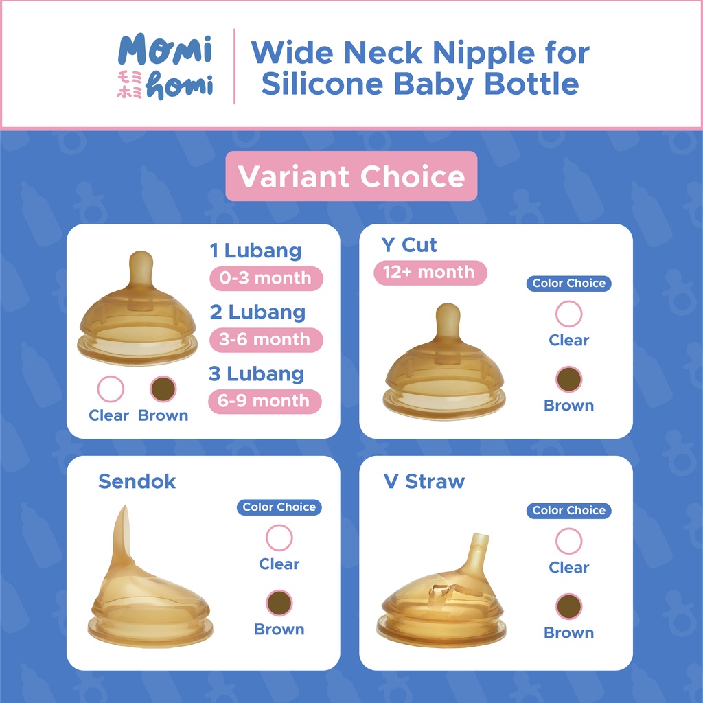 MOMI HOMI S05 Nipple Dot Pengganti Wide Neck 1 Lubang / 2 Lubang / 3 Lubang Dot Sendok Sedotan Botol bayi leher lebar pengganti puting Aksesoris Kepala Dot Bayi Botol Susu Pacifier Bottle Nipple Replacement New Born Bayi Baru Lahir Silicone Nipple