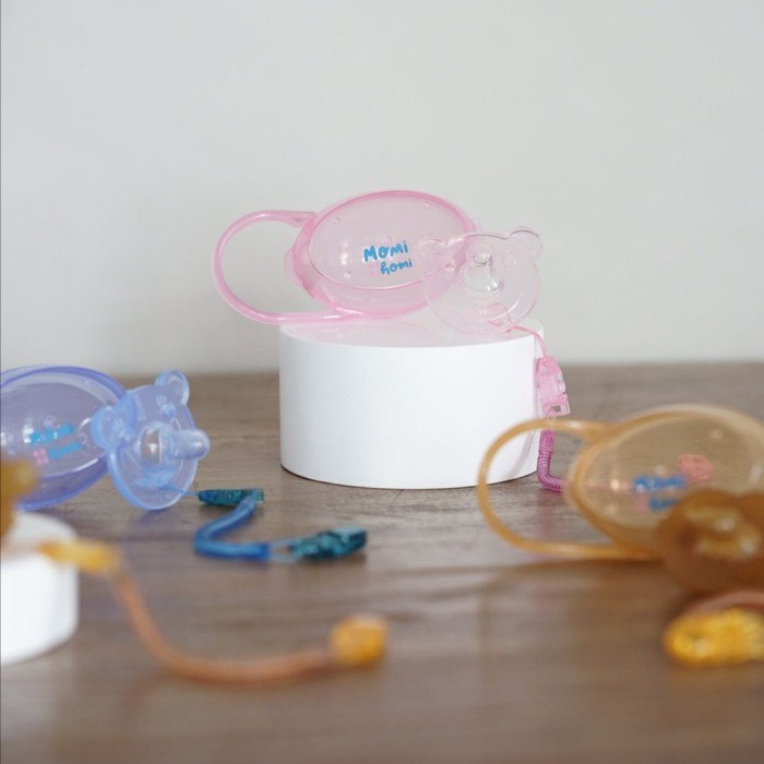 {SILIKON ANTI BACTERIAL} MOMI HOMI teether Dot 01 Empeng Bayi Silicone Baby Pacifier Dot Bayi mainan perlengkapan baby Empeng Gigitan Bayi Silikon Set Dengan Tali Klip Pengikat